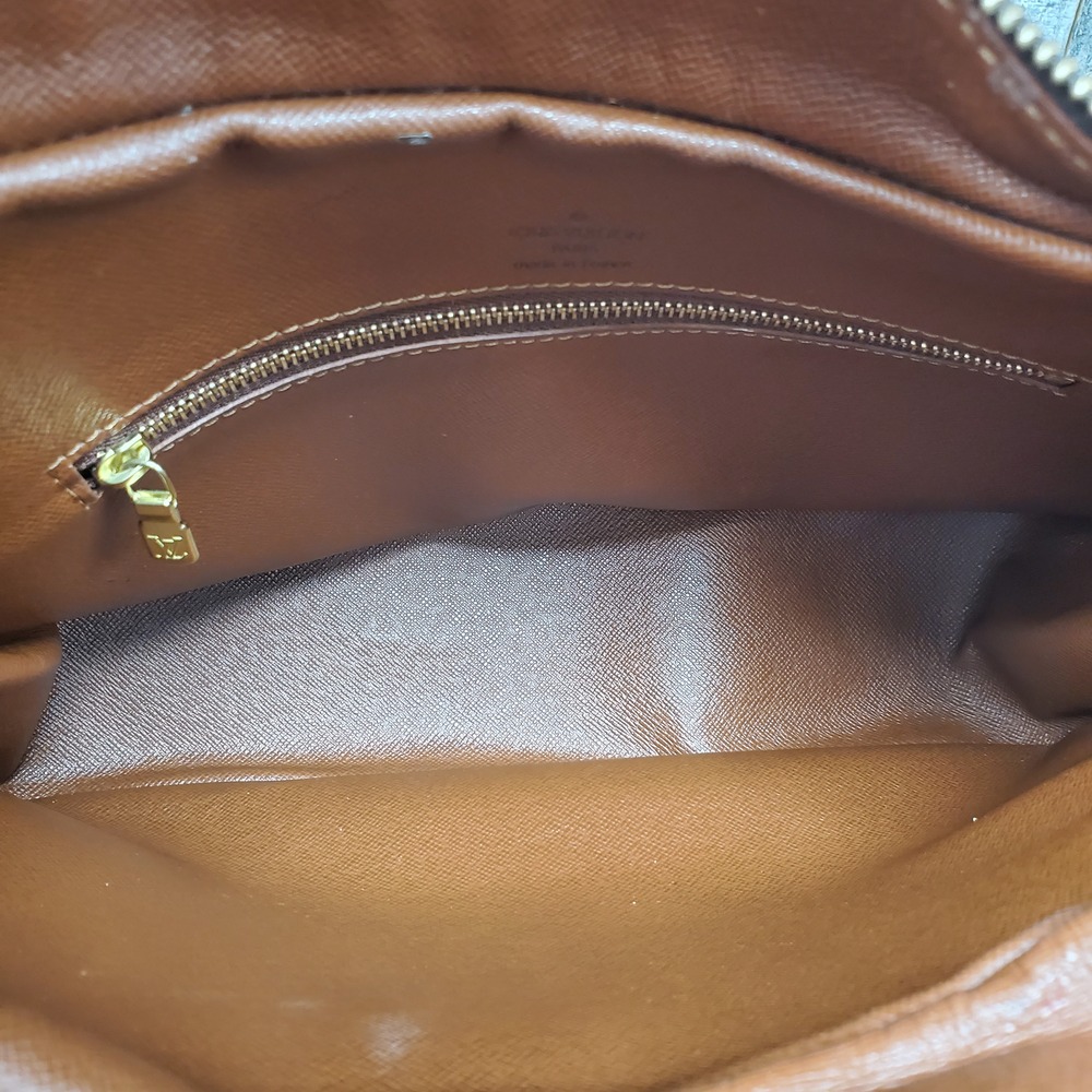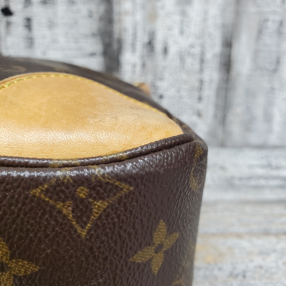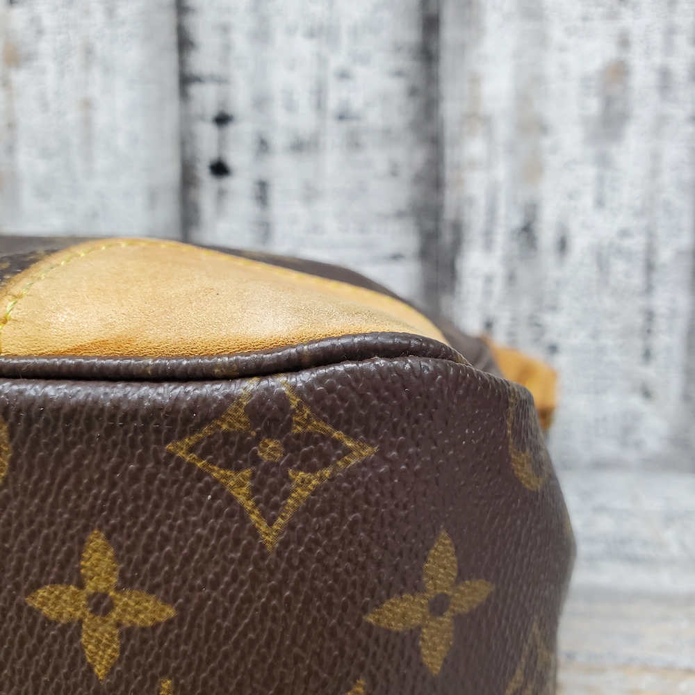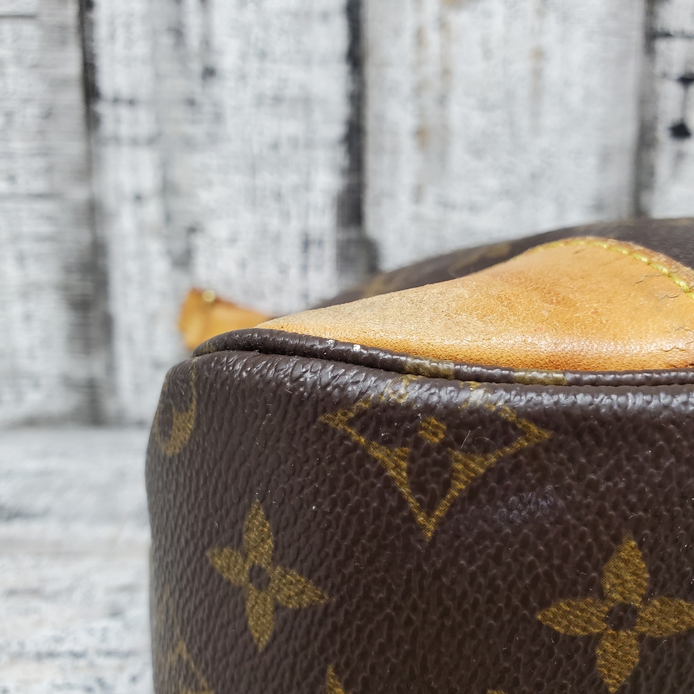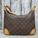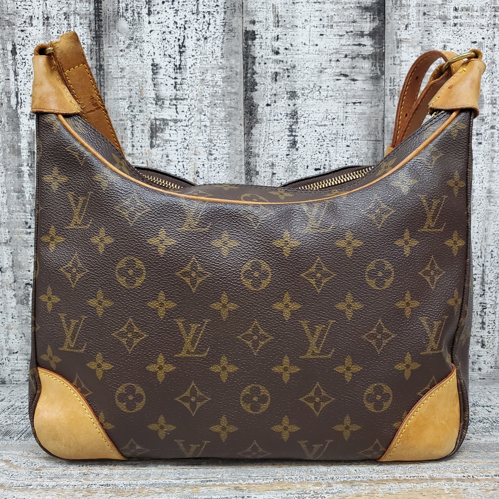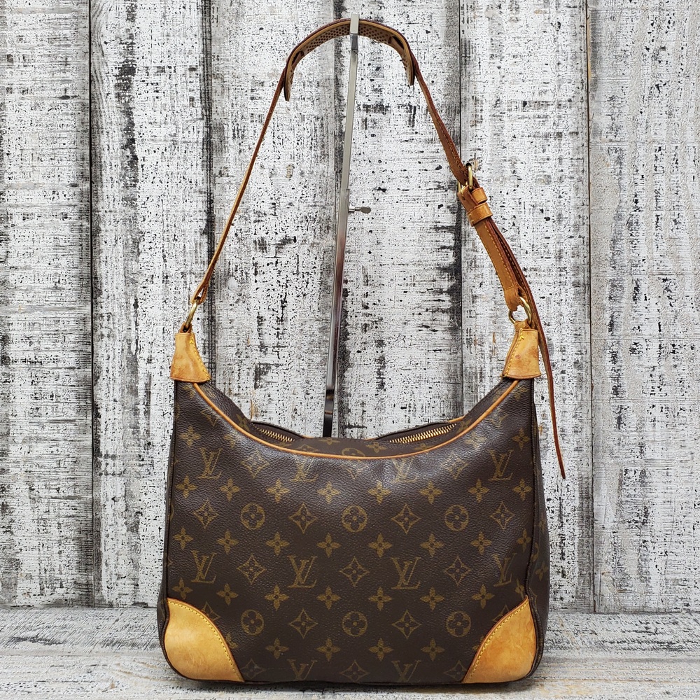 A pre-loved Louis Vuitton Boulogne shoulder bag, displaying subtle signs of wear, maintaining its elegance and ideal for luxurious and practical fashion statements.