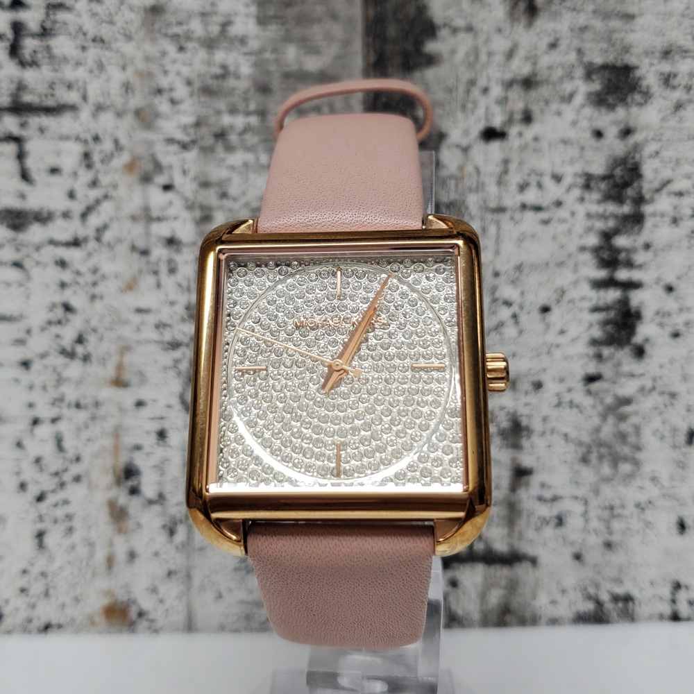 A stylish Michael Kors MK-2669 watch, featuring a radiant rose gold-tone finish, embellished with sparkling crystals for a touch of feminine elegance.