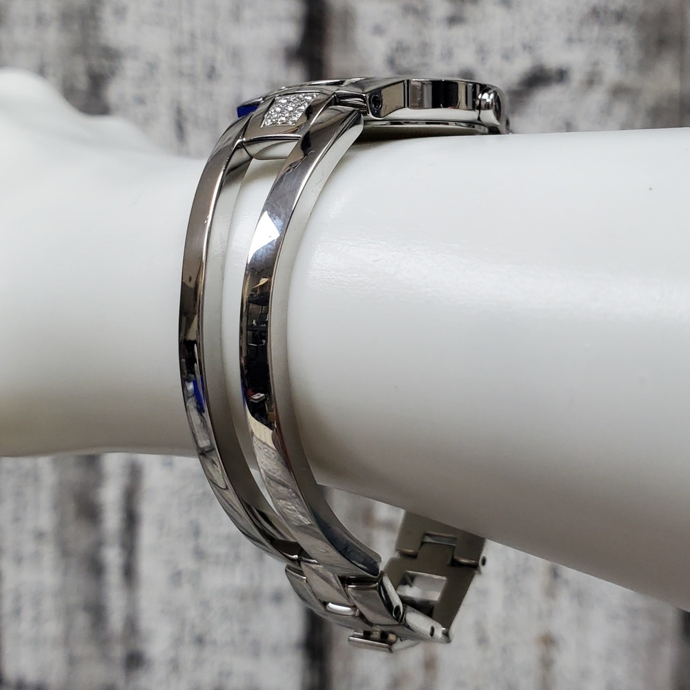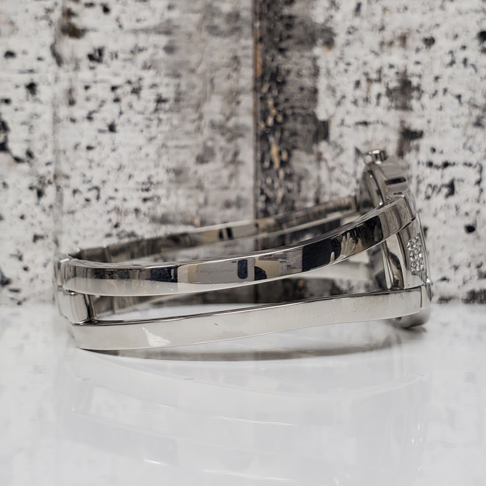 Elegant, luxurious Movado Amorosa 24mm watch featuring a sleek bangle design, elegant diamond accents, and precision Swiss craftsmanship for timeless sophistication and style.