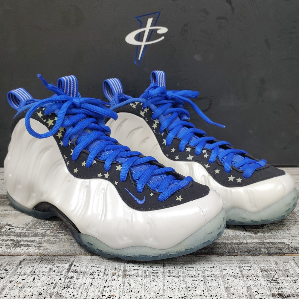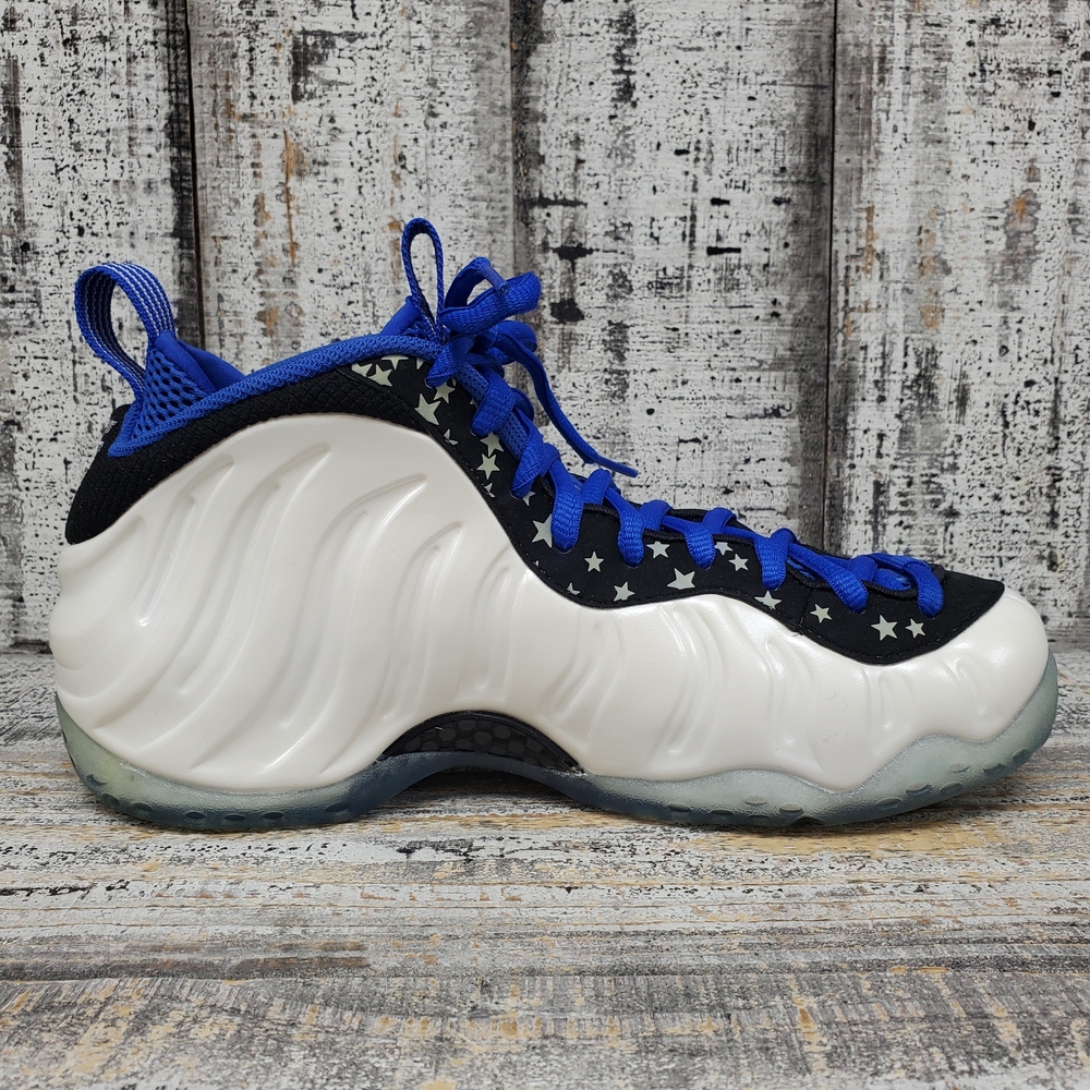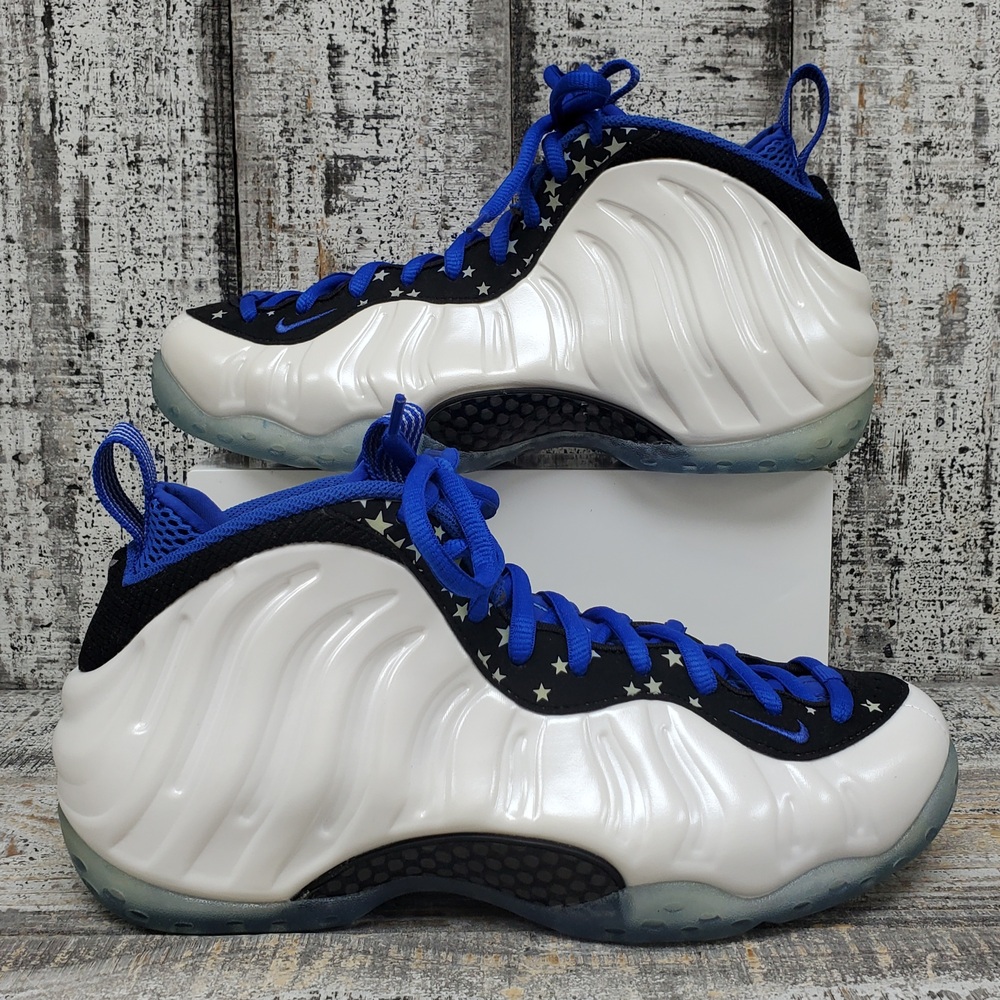 Like new, size 8.5 Nike Foamposites Shooting Stars edition, in original box. Stylish, comfortable, and highly sought-after athletic shoes for sports or casual wear.
