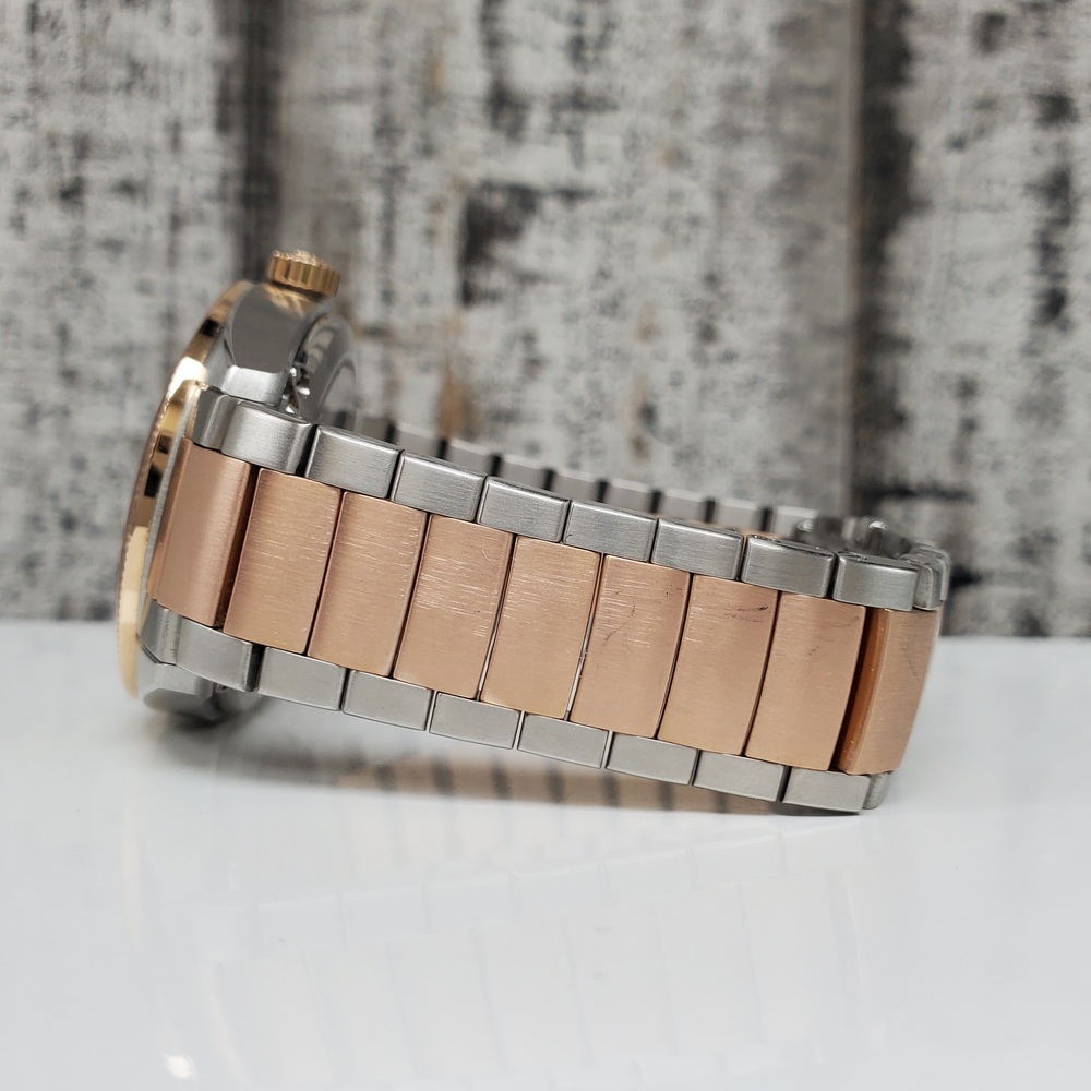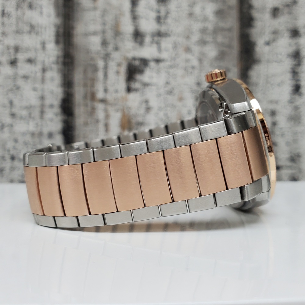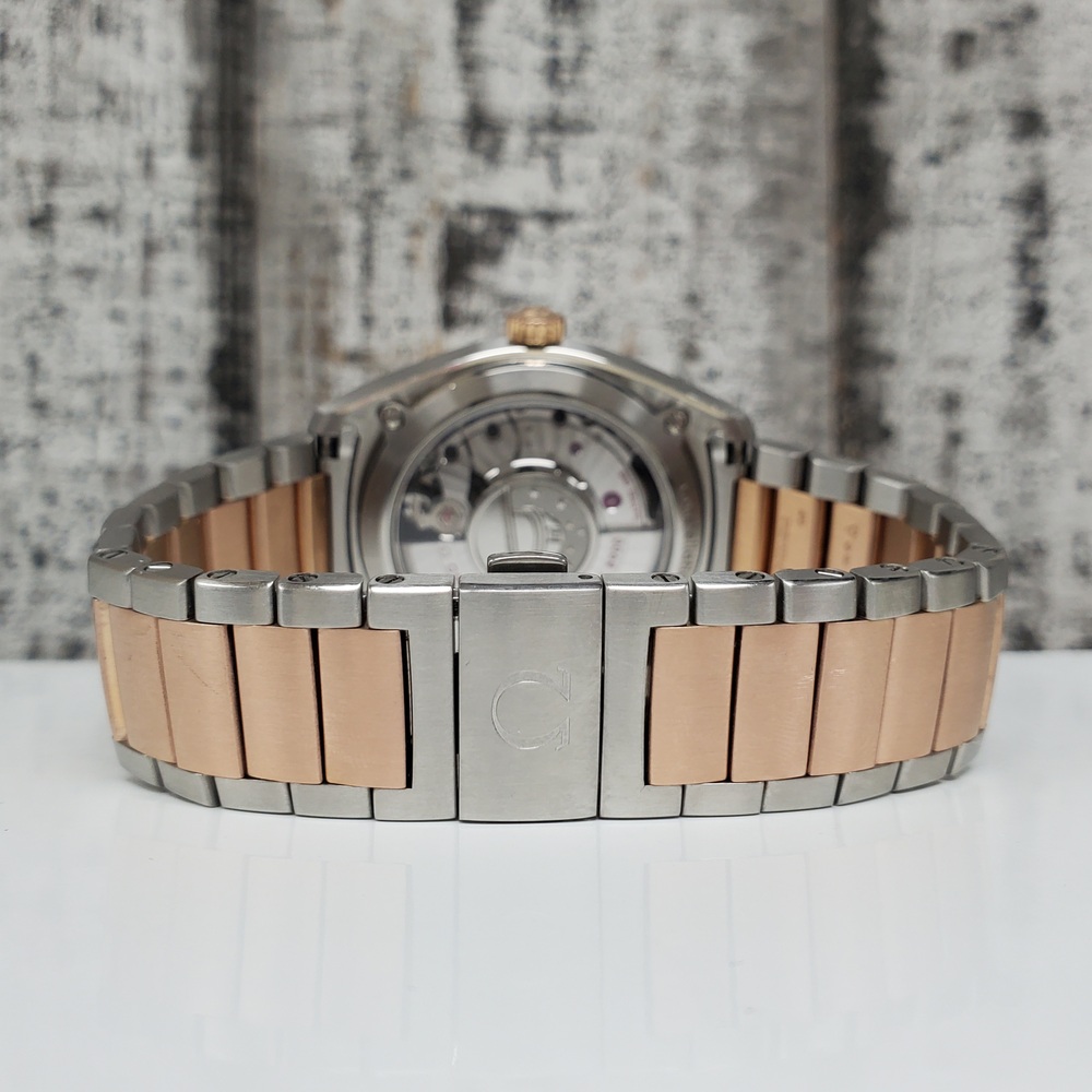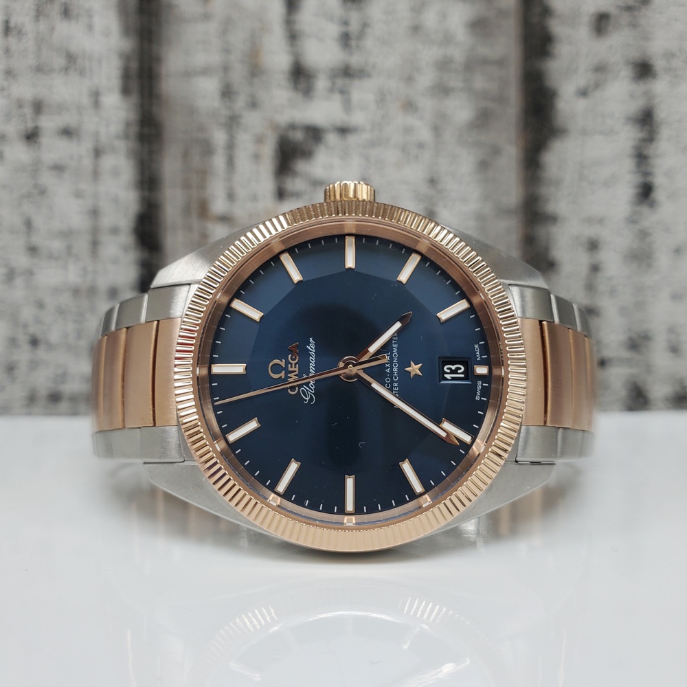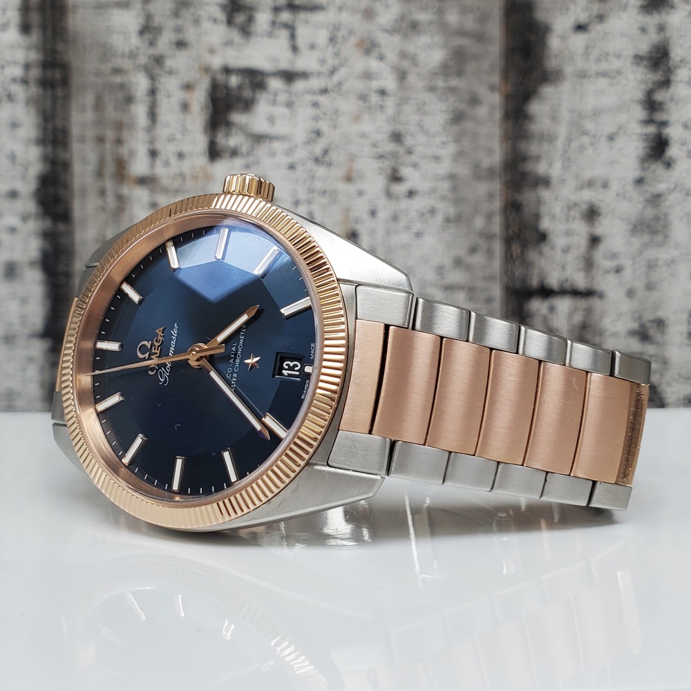 The Omega Globemaster 39mm 18K RG/SS features a co-axial 8900 movement for precise timekeeping. It showcases a sophisticated blend of 18K rose gold and stainless steel, exuding luxury and style. This timepiece elegantly merges high-quality performance with timeless design.