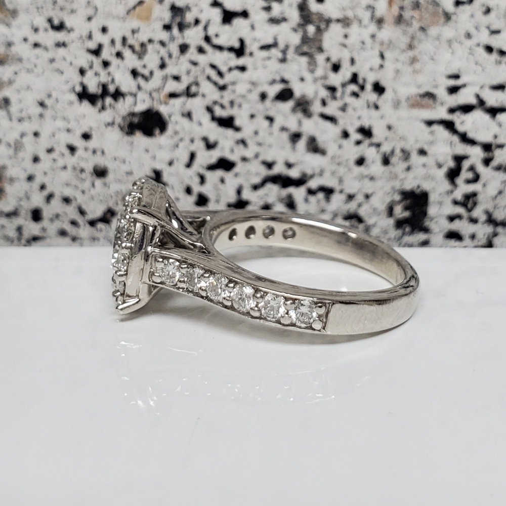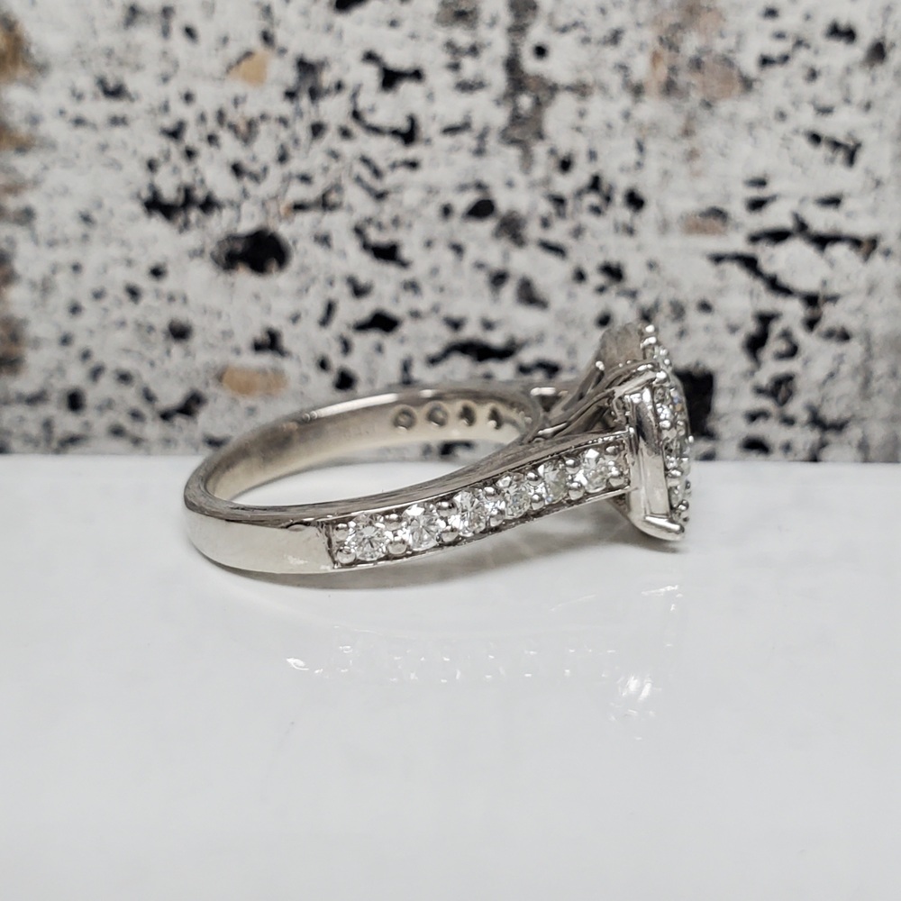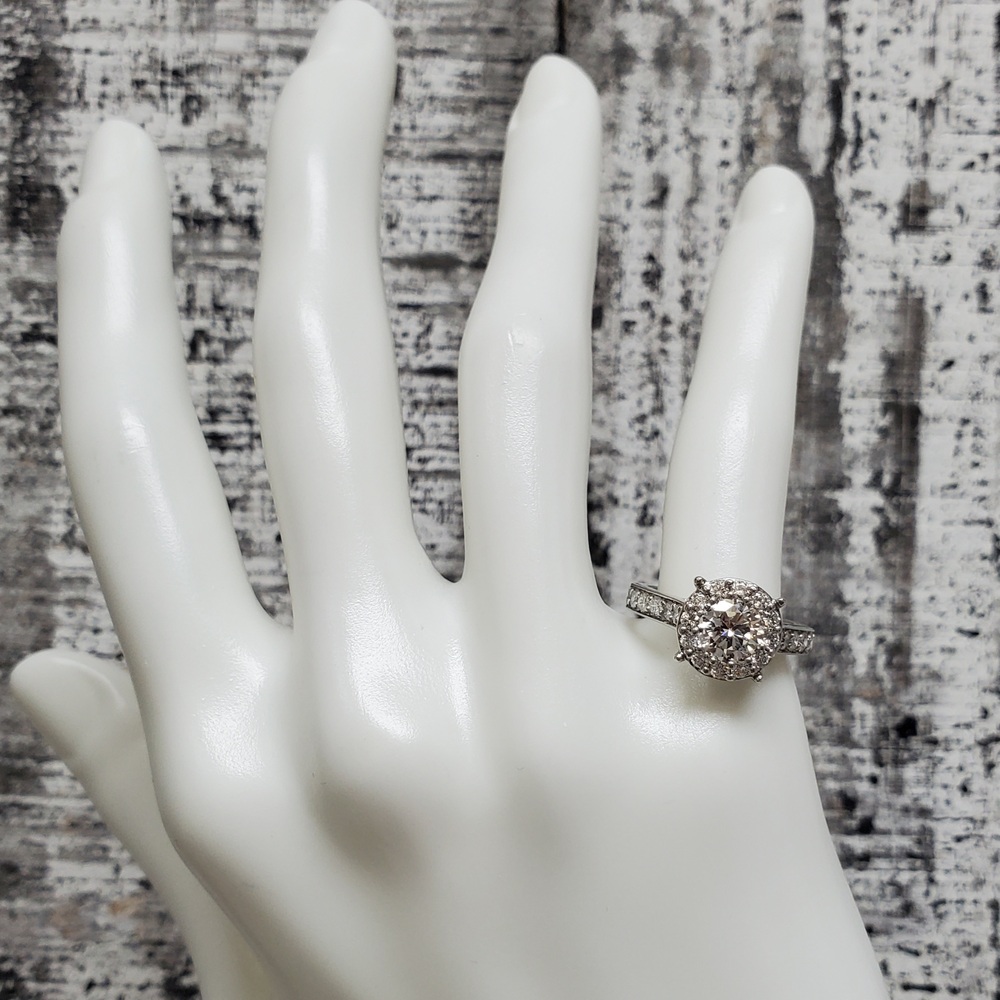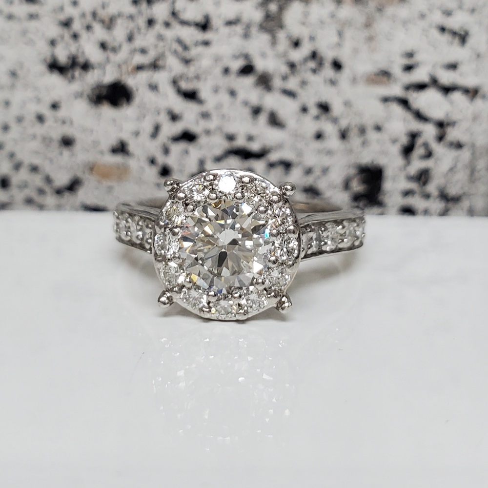 We have this stunning Platinum Halo Diamond Ring For sale!