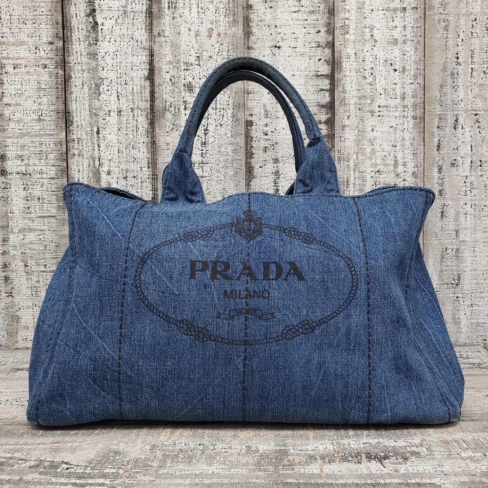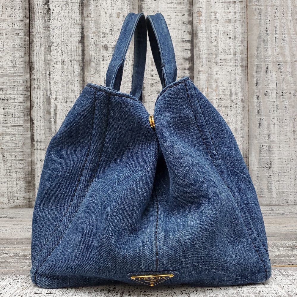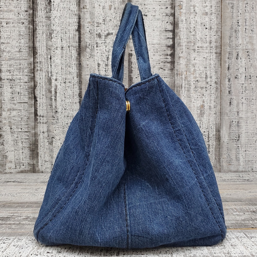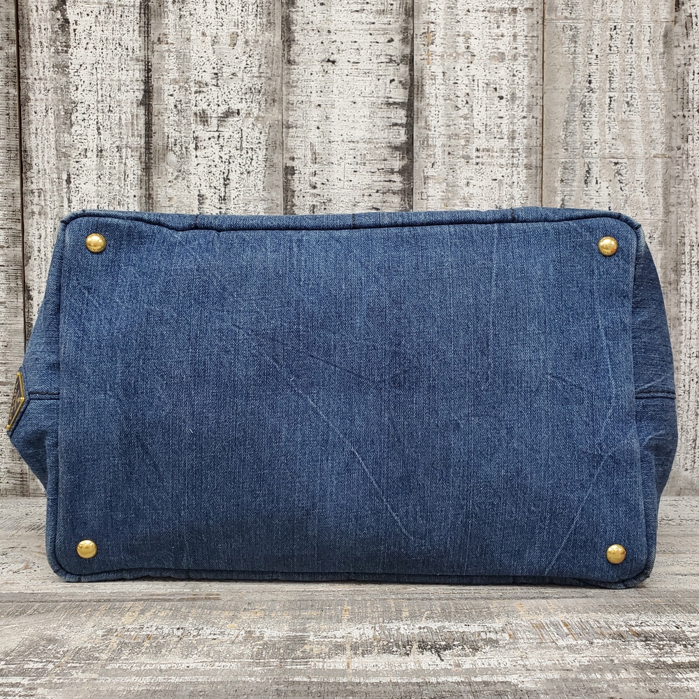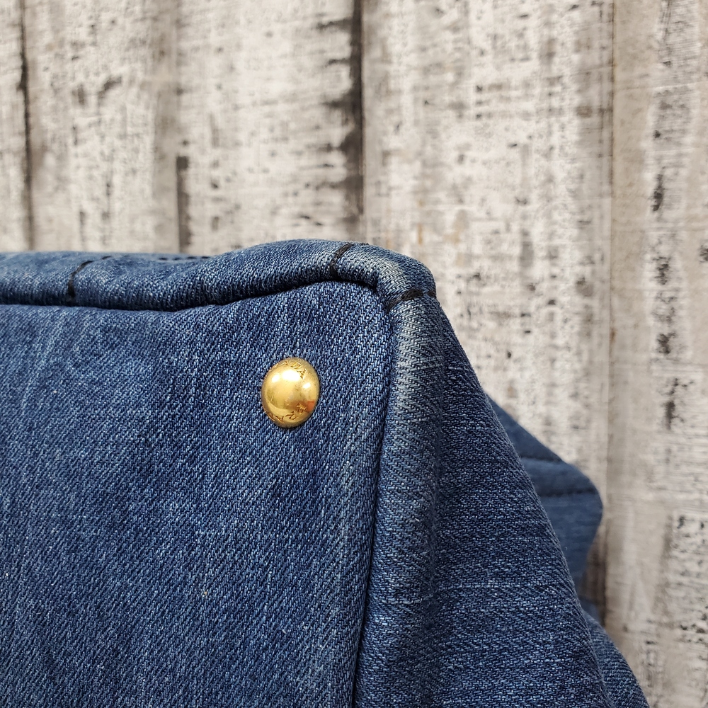 A pre-loved Prada Jean Tote Bag combines classy style with casual denim fabric, offering ample storage for daily essentials with timeless design appeal.