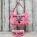 A stylish combo of the iconic Prada Terry Cloth Mini Pink 2000 Re-Edition Bag and a sleek Prada headband, catering to modern chic fashion enthusiasts.