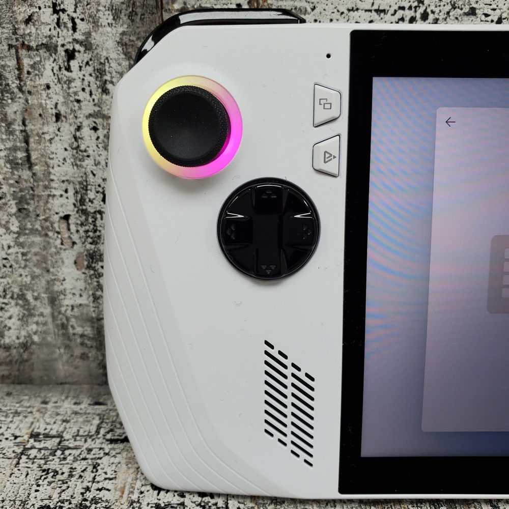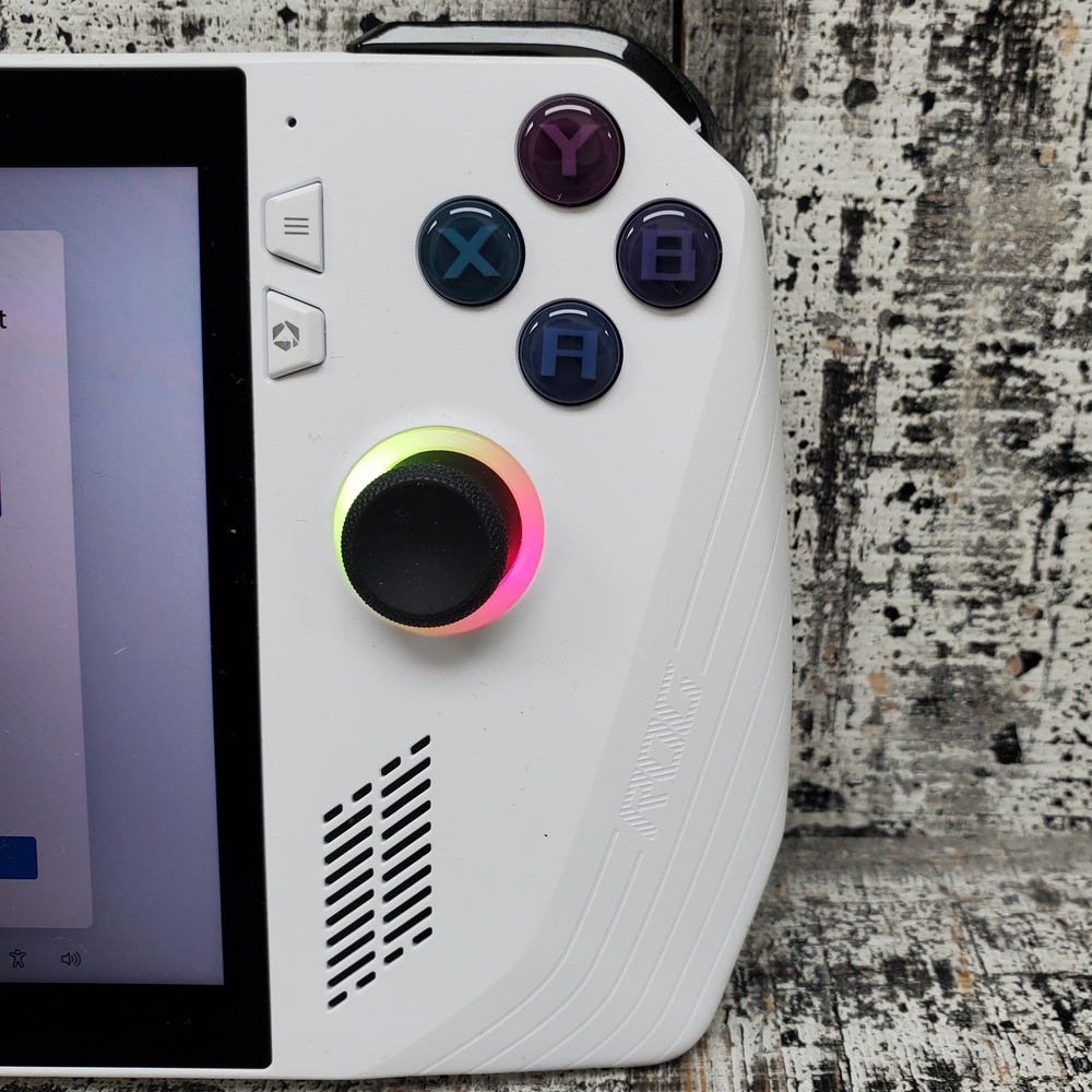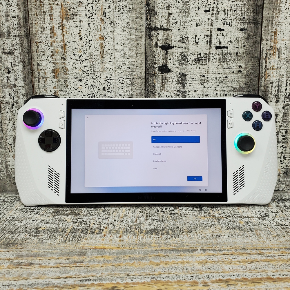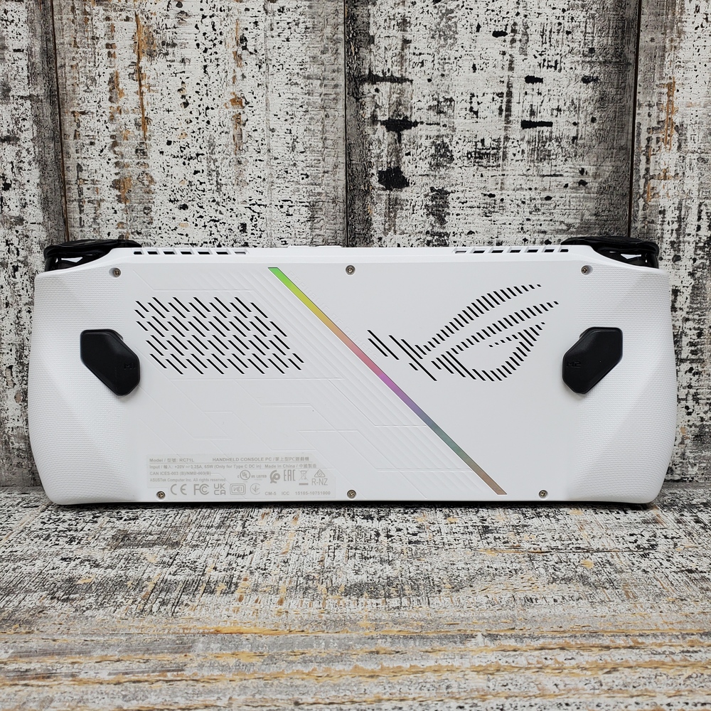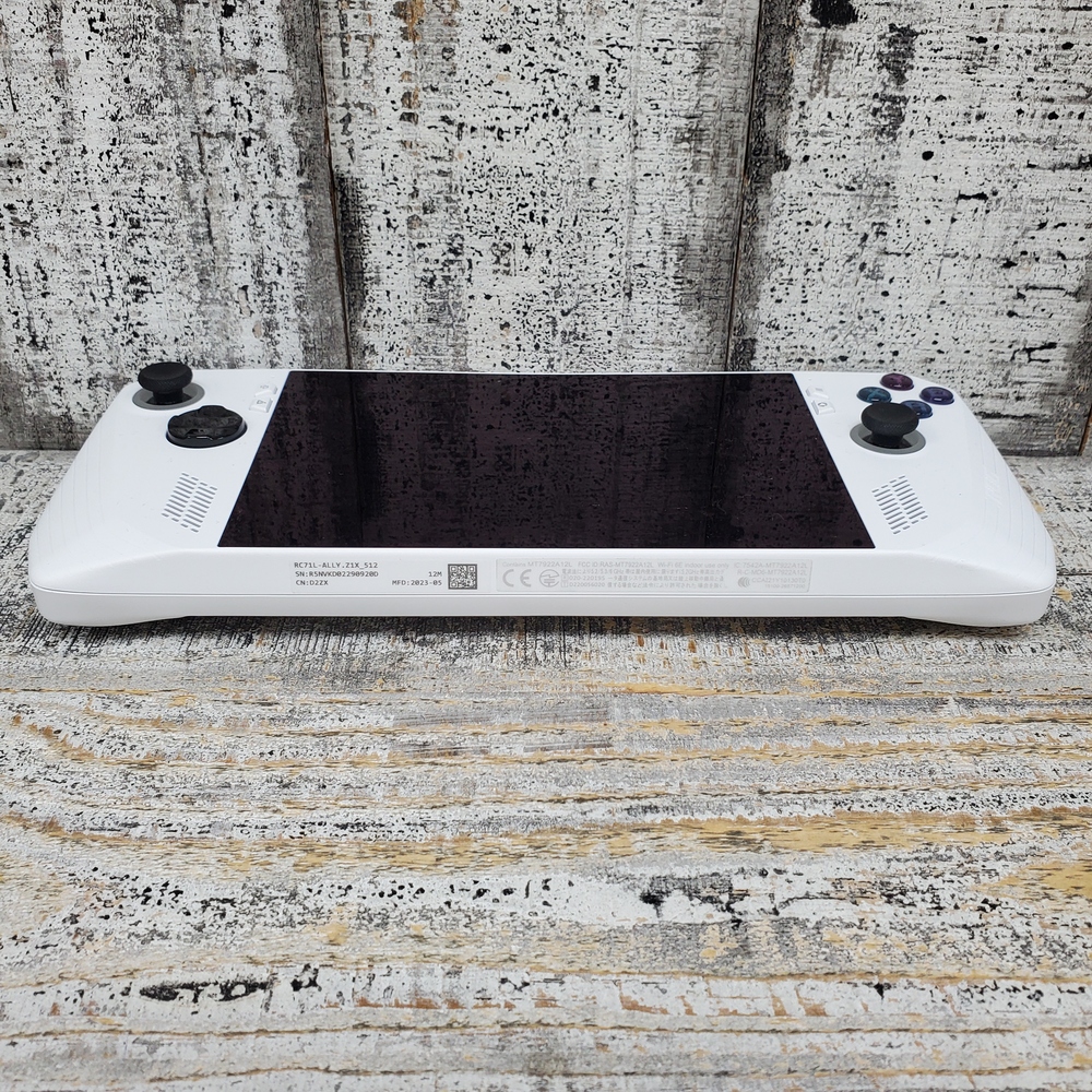 A 7 ROG Ally handheld gaming device, features a 120Hz FHD 1080p display, AMD Ryzen Z1 Extreme Processor, 512GB storage, Windows OS, and charger included.