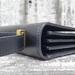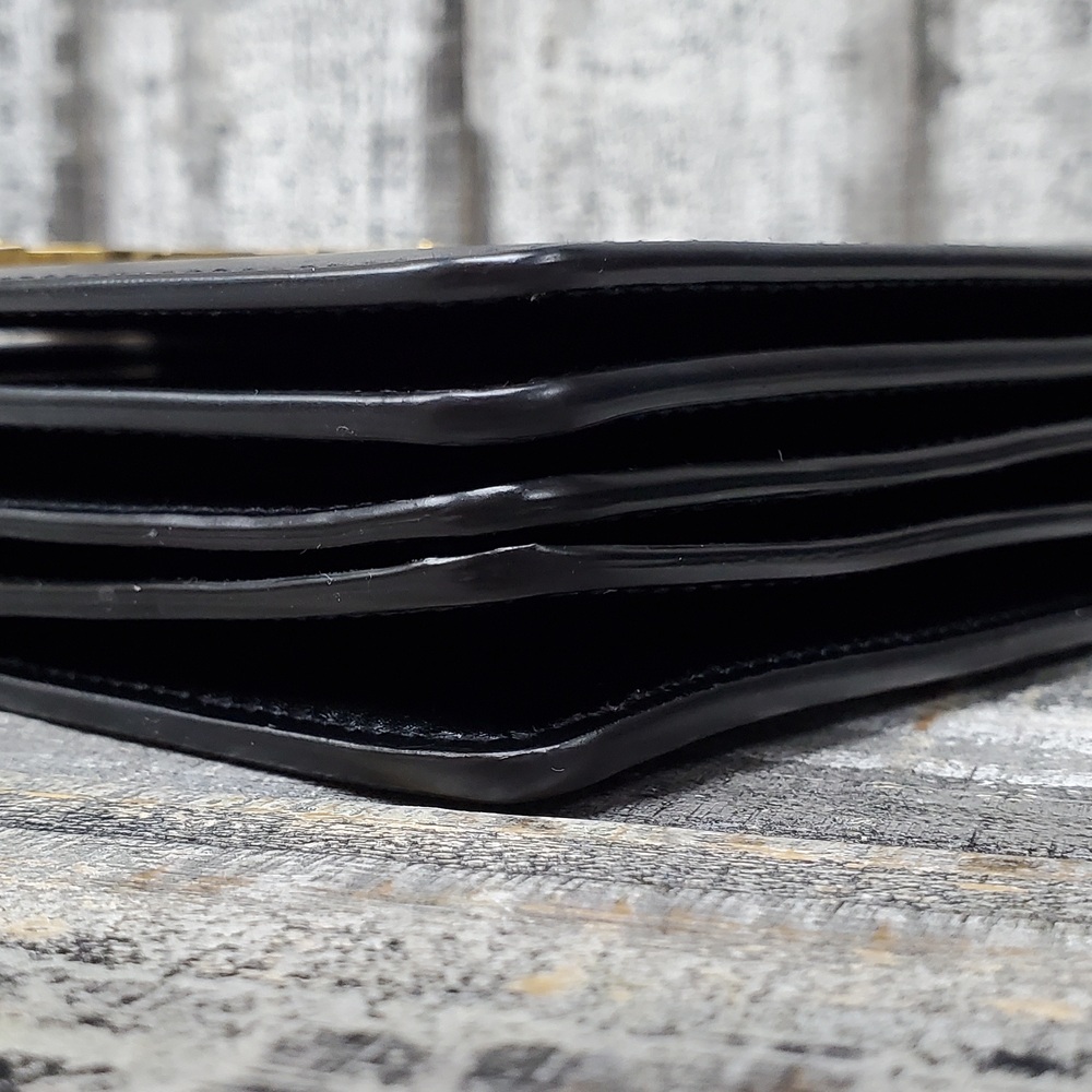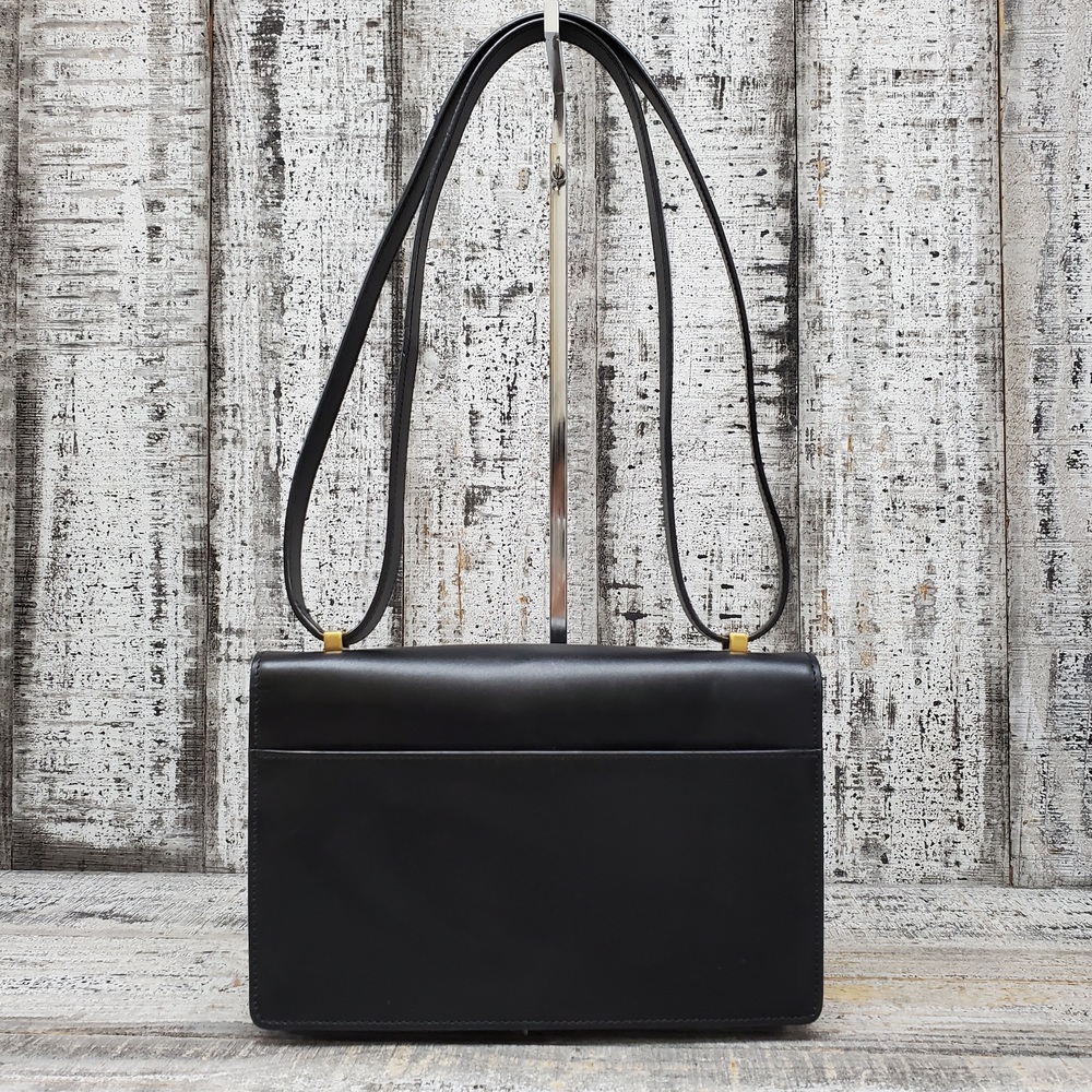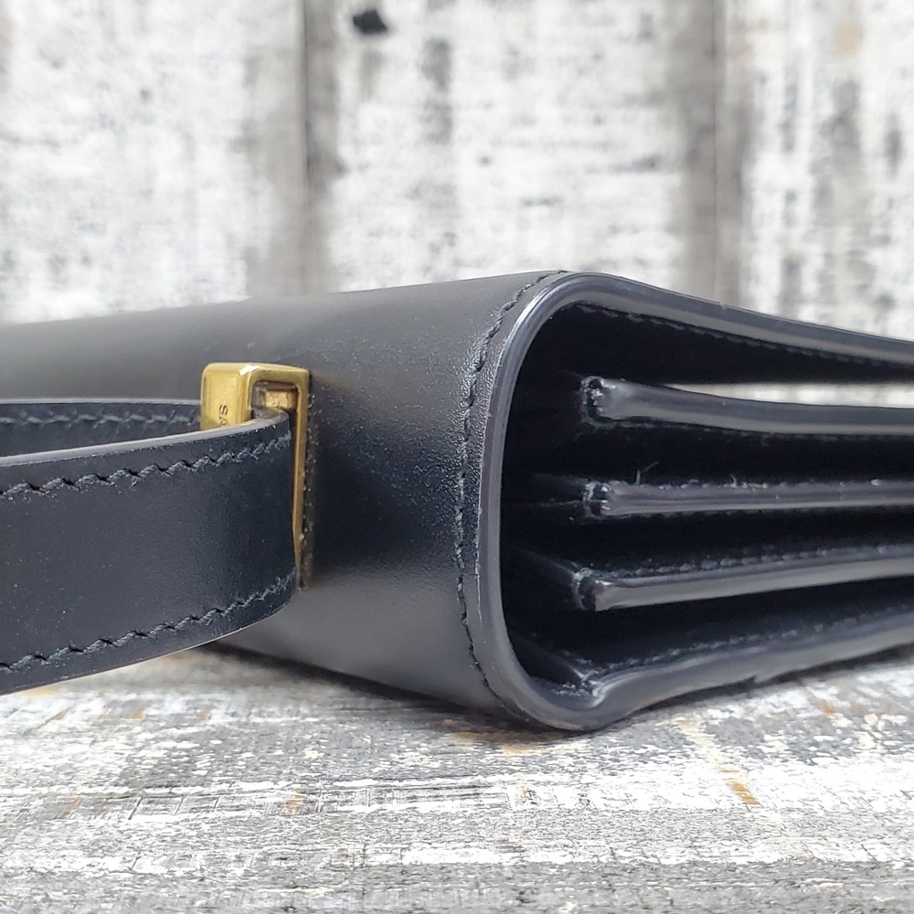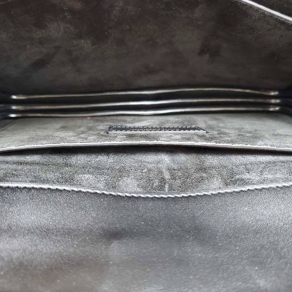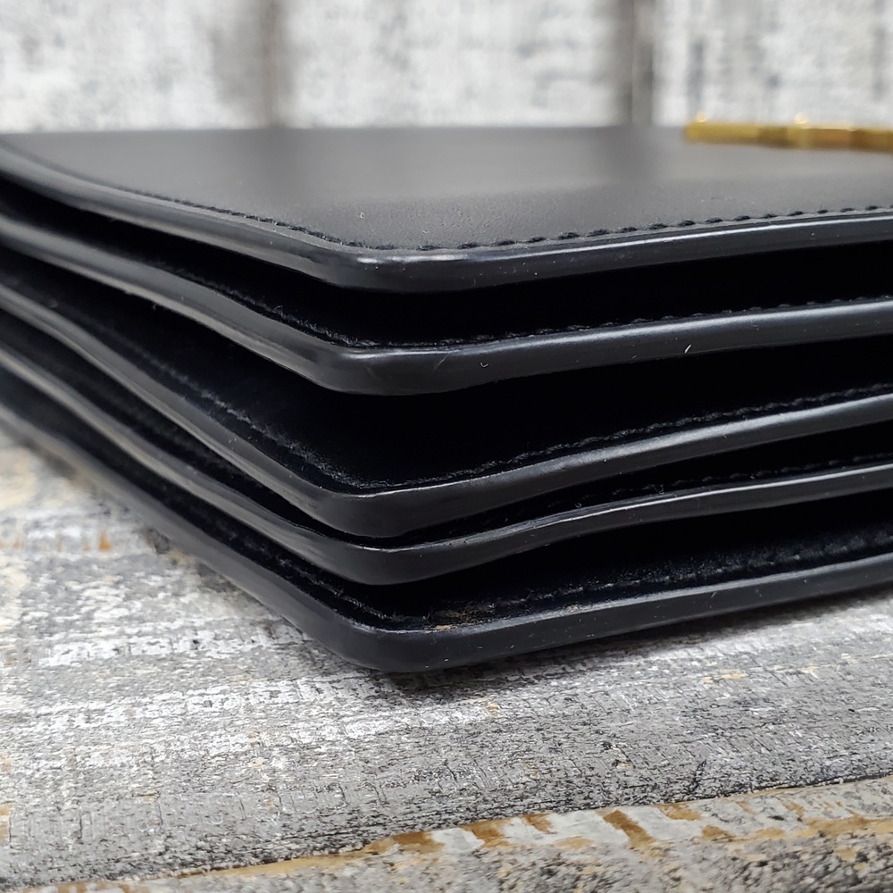 A sleek, small-sized Saint Laurent Dylan shoulder bag, elegant in black calfskin, adorned with iconic monogram hardware. Features detachable strap for versatile styling.