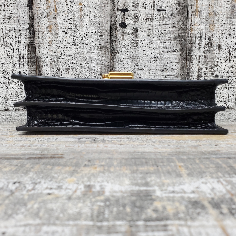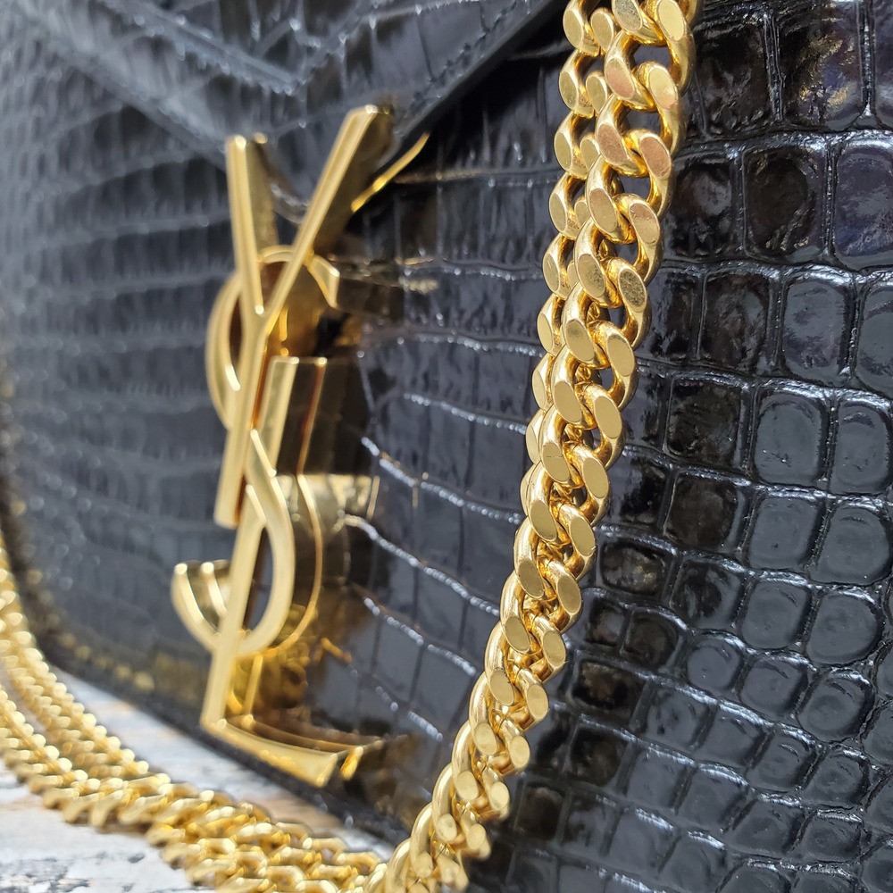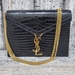 The Saint Laurent Cassandra Leather is a luxurious, high-end fashion accessory. It features premium quality leather, a unique gold-tone monogram clasp, and elegant, sleek design. This versatile, timeless piece blends effortlessly with any outfit for a stylish, sophisticated look.
