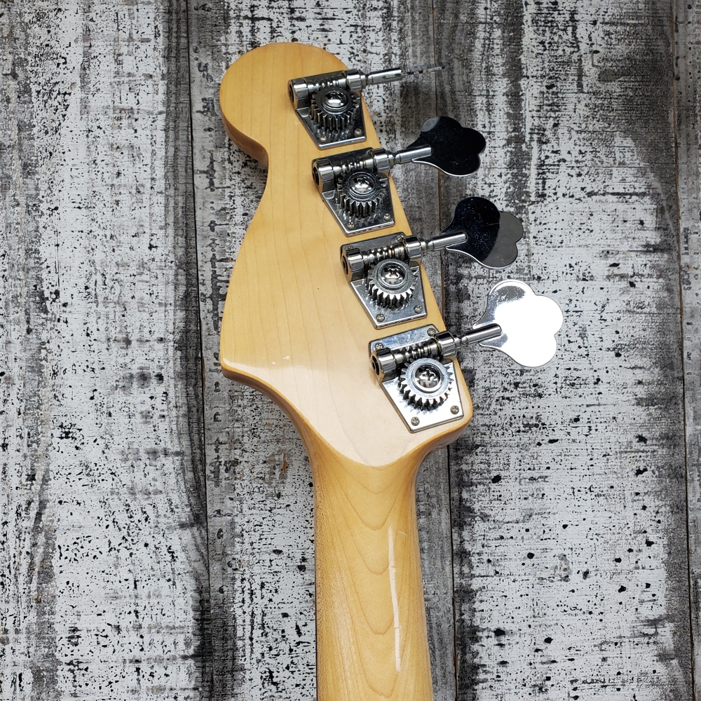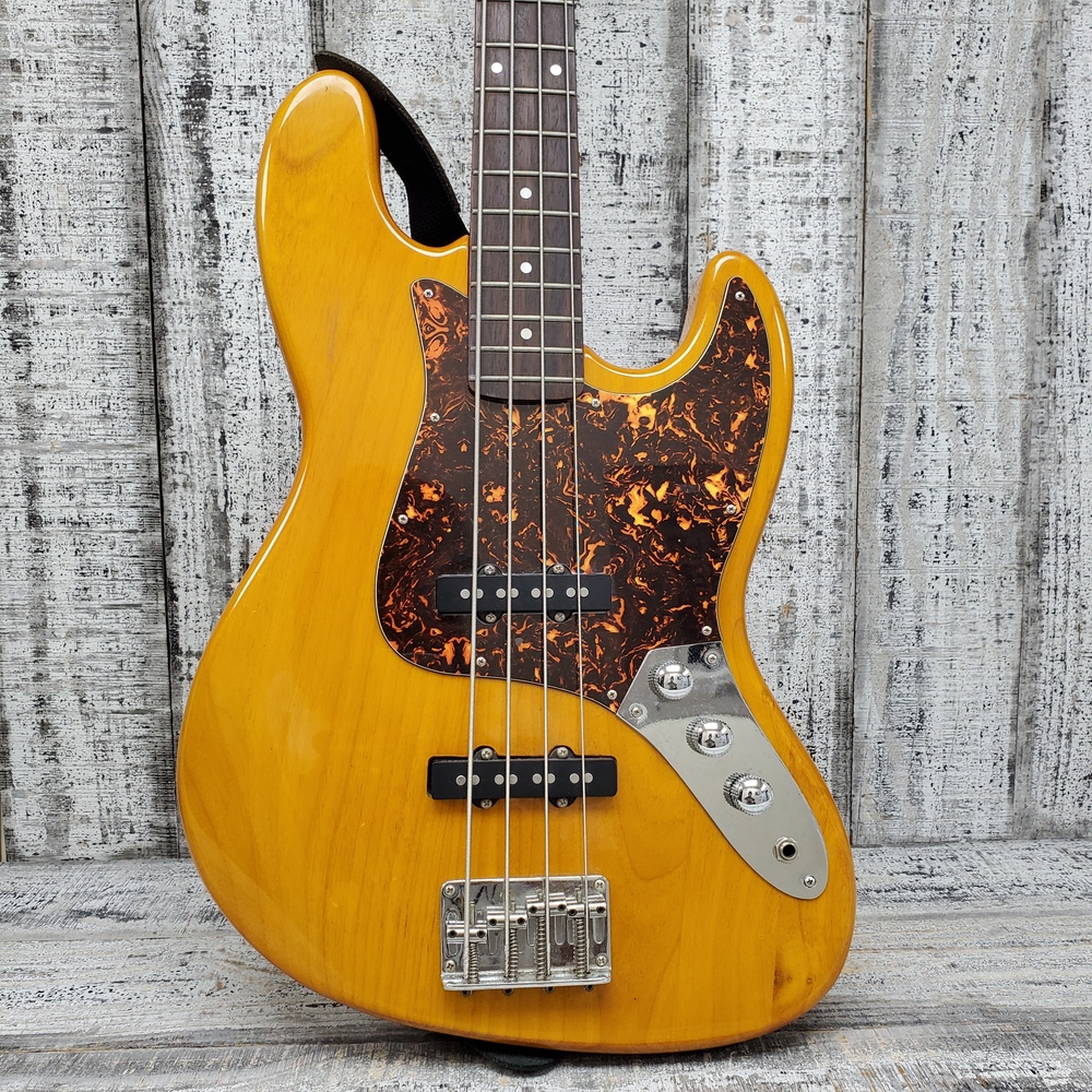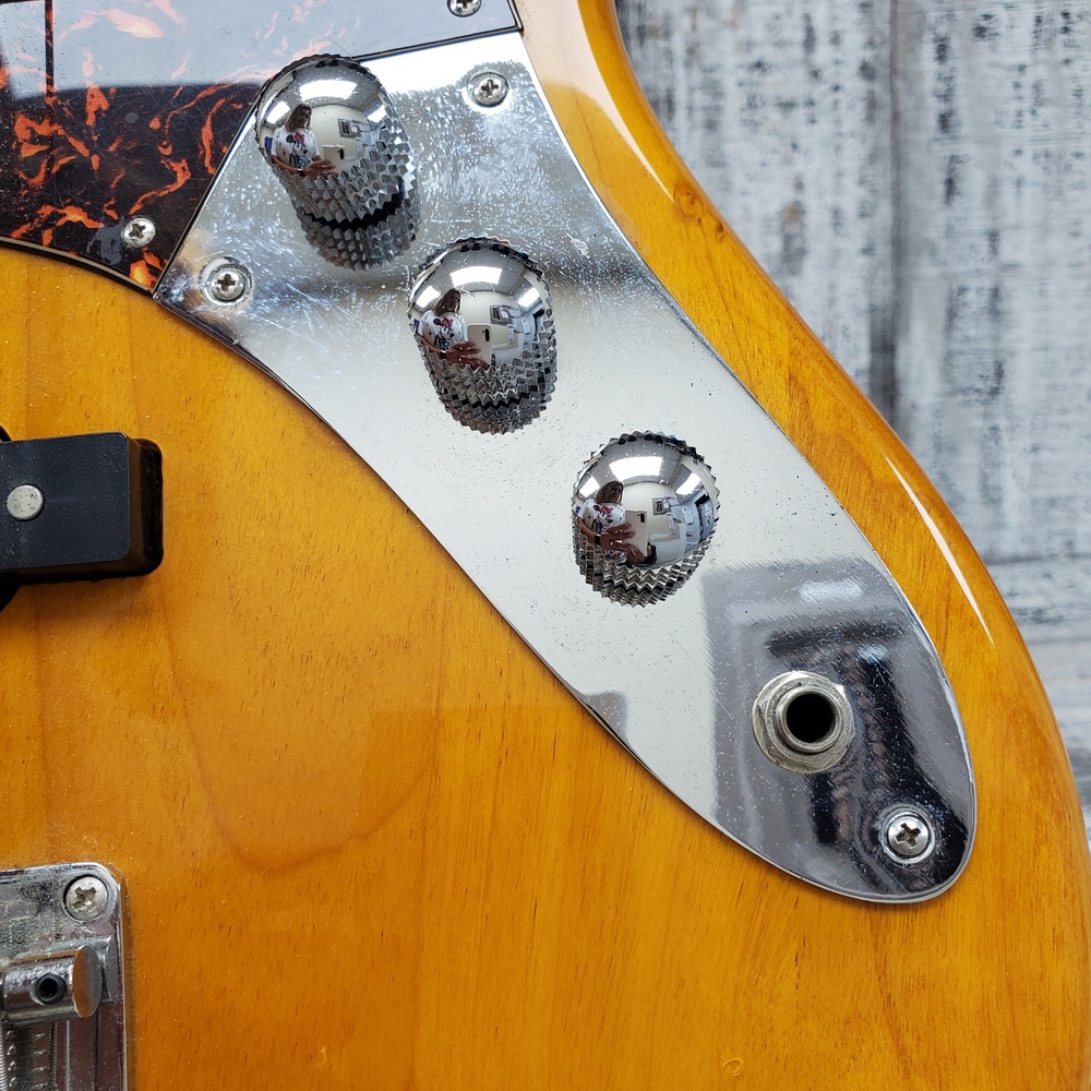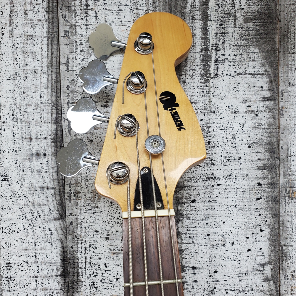 A Butterscotch-color 4-string Series 10 bass guitar, featuring undefined attributes, housed in a soft black case for portability and protection against daily wear and tear.