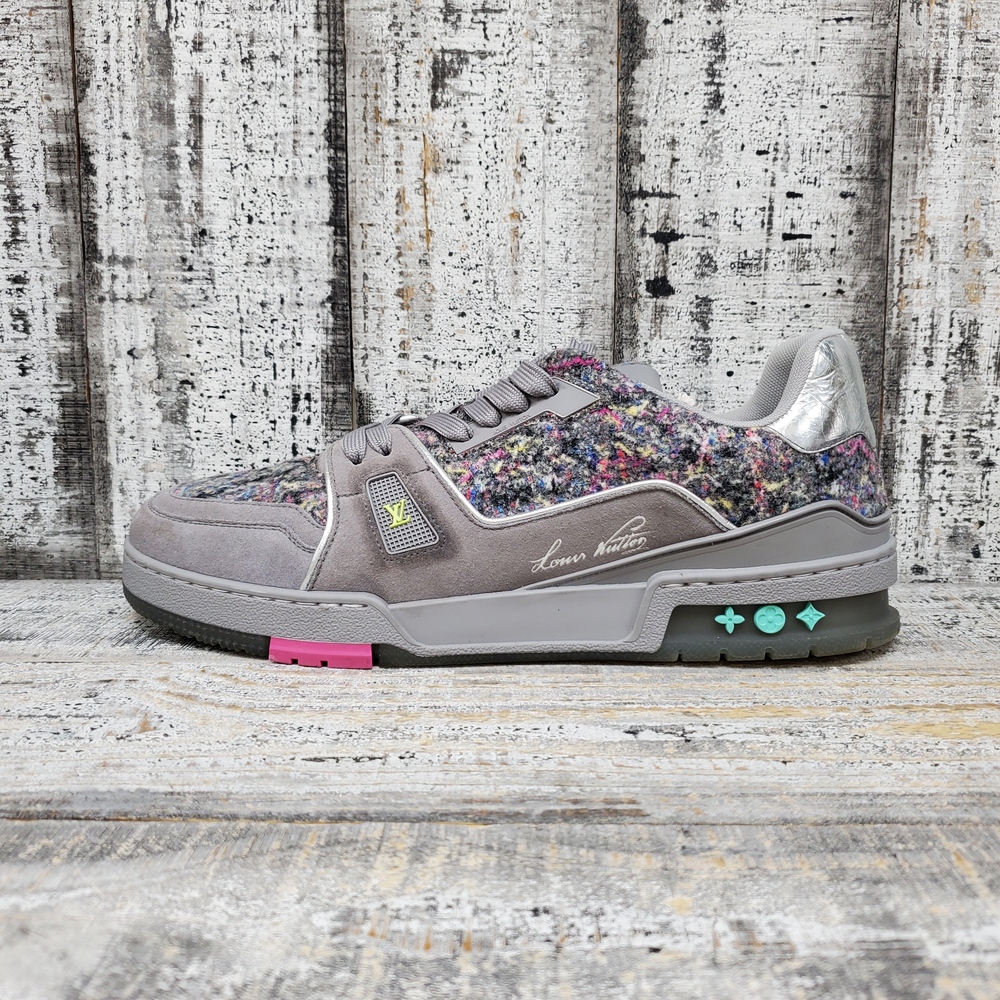 Generic Size 10 Louis Vuitton Grey Trainers, used condition, no original packaging included. Versatile and stylish designer footwear for everyday wear.
