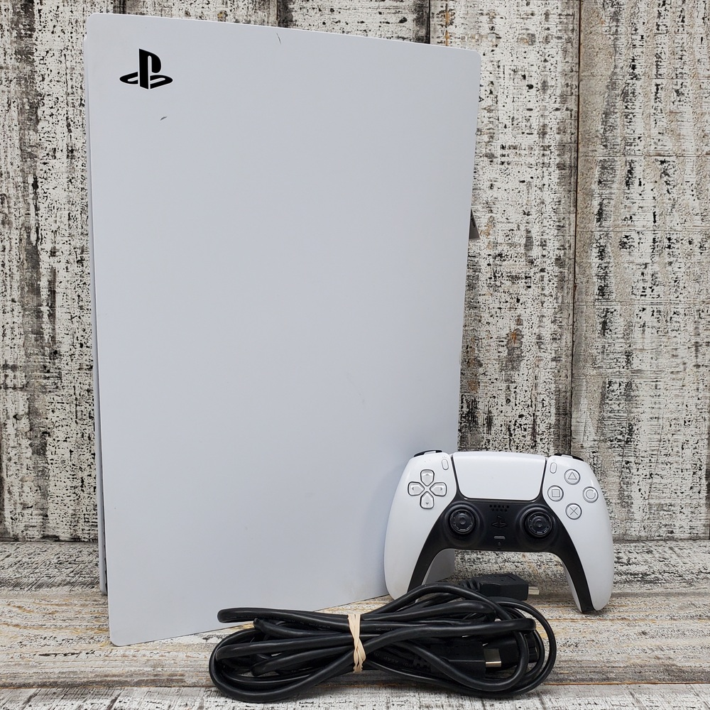 The Sony PlayStation 5 Digital Version includes a controller and cables for a next-generation, disc-less gaming experience with high-speed performance and stunning graphics.