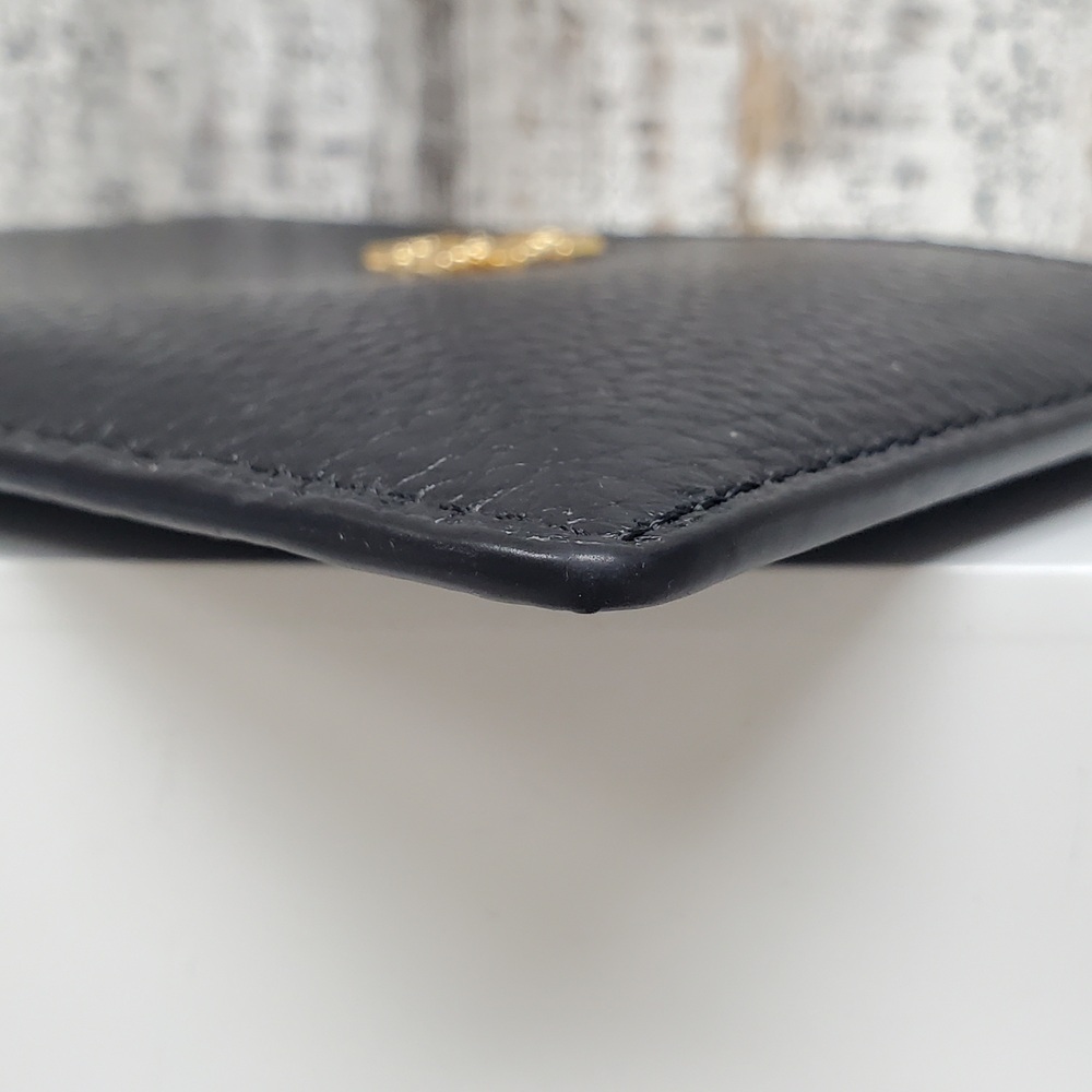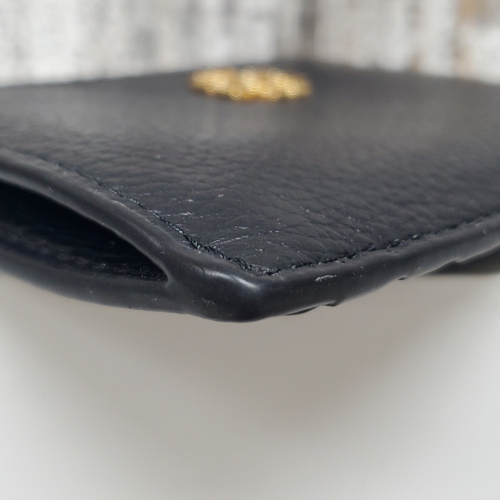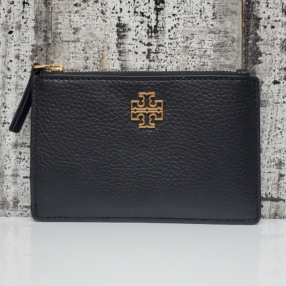 Pre-owned Tory Burch wallet showing minor wear, with some scuffs and light discoloration; fully functional with intact hardware and clean interior compartments.