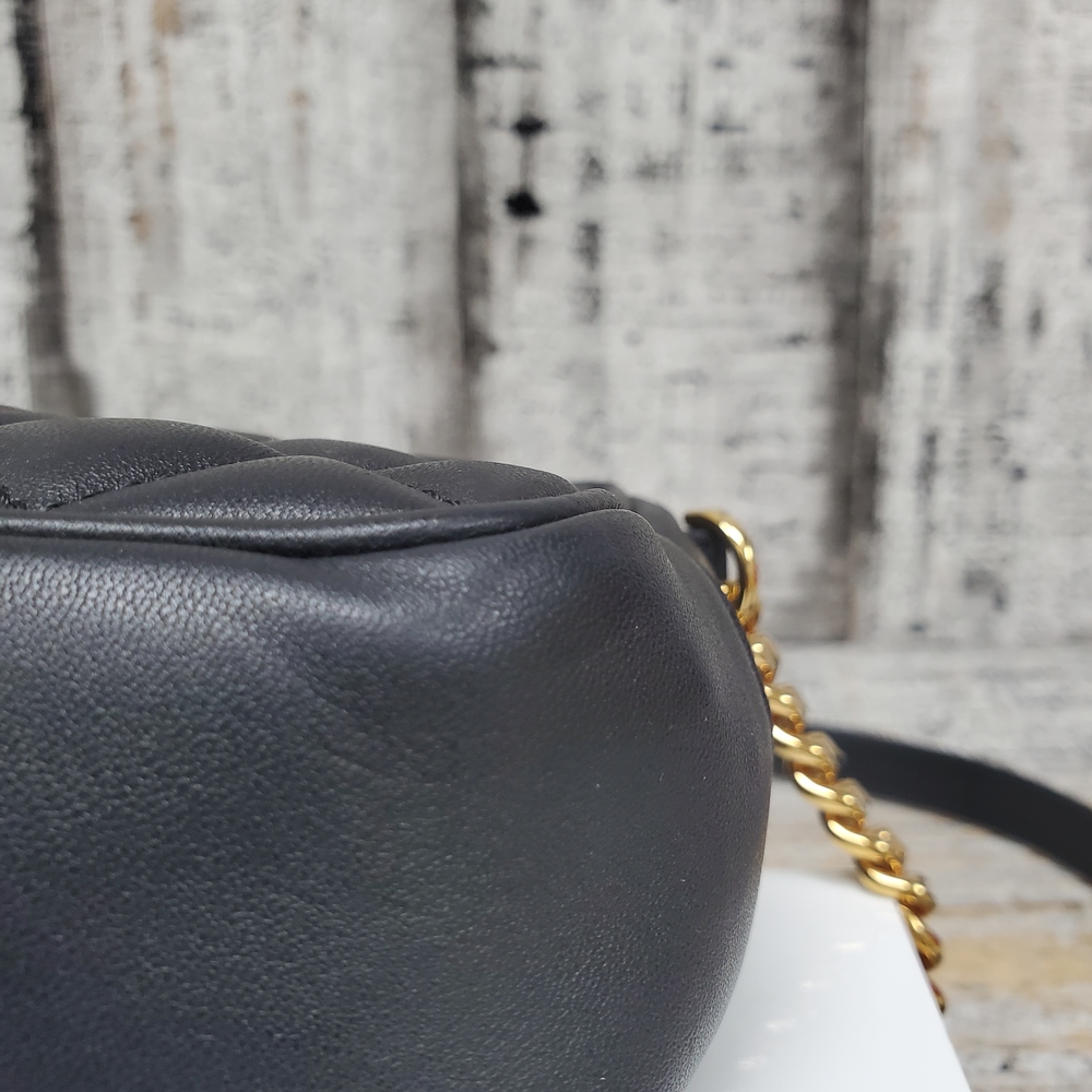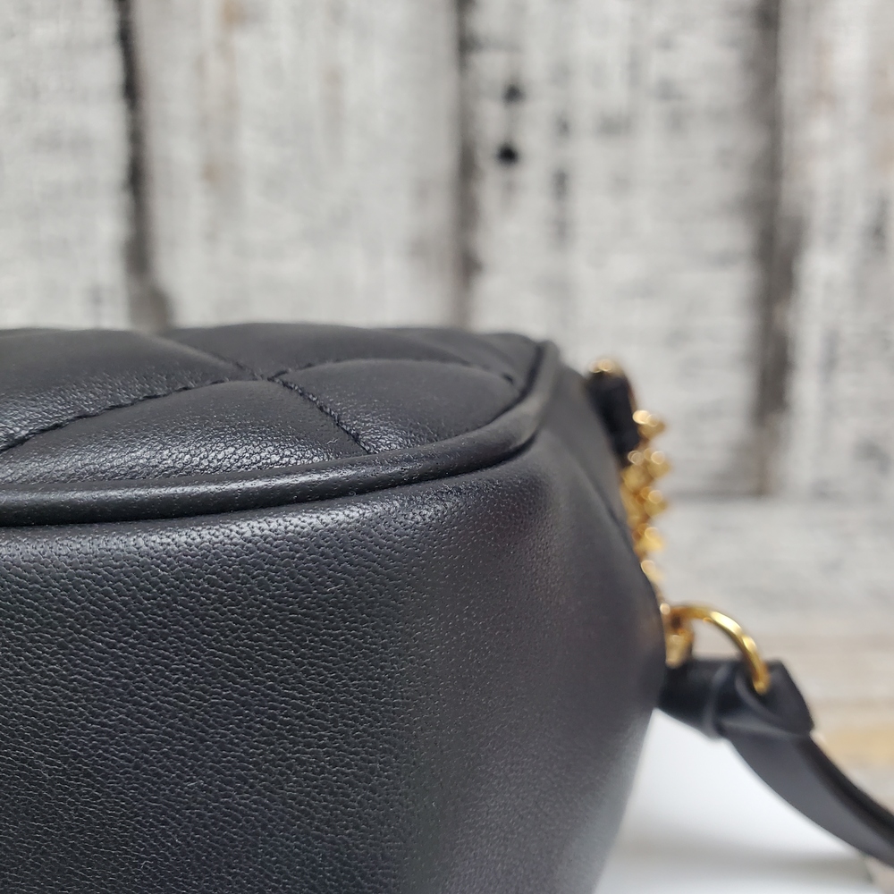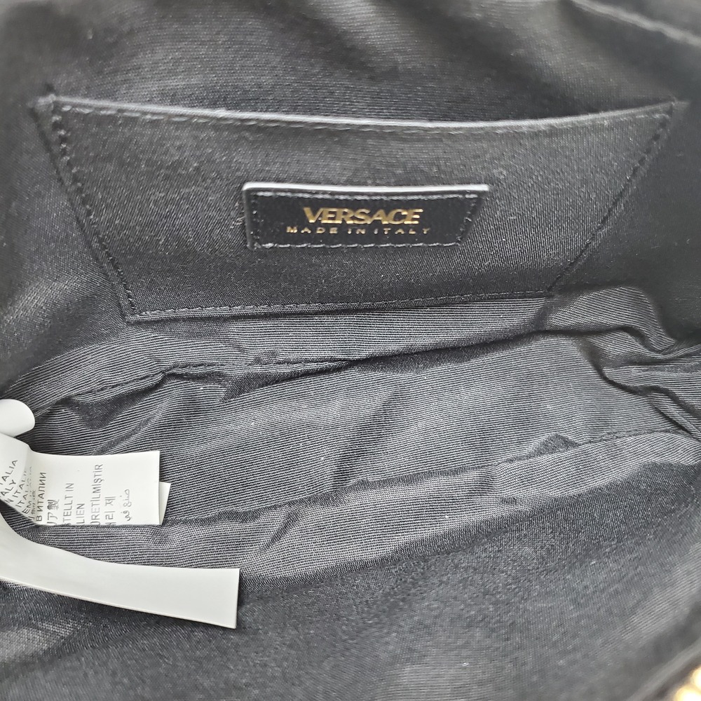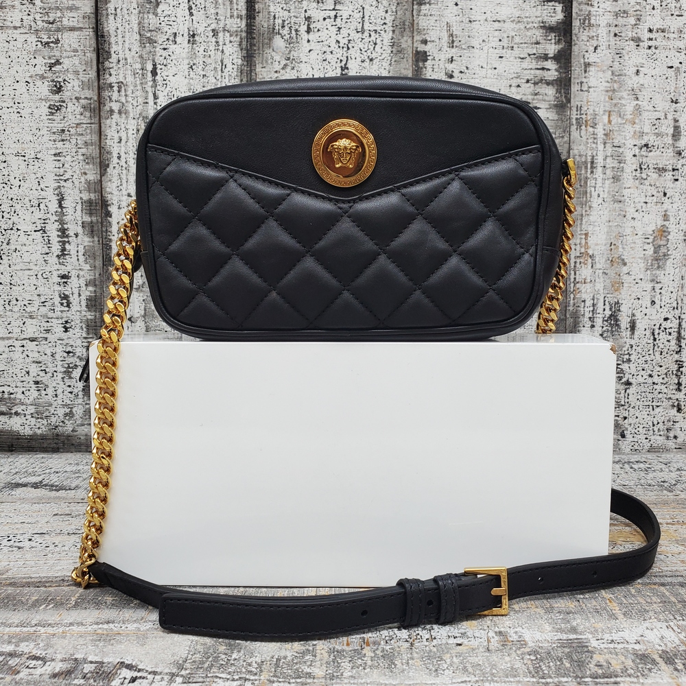 Versace's sleek black crossbody purse, designed with high quality materials, offers great elegance and functionality. Slightly used but remains in good condition.