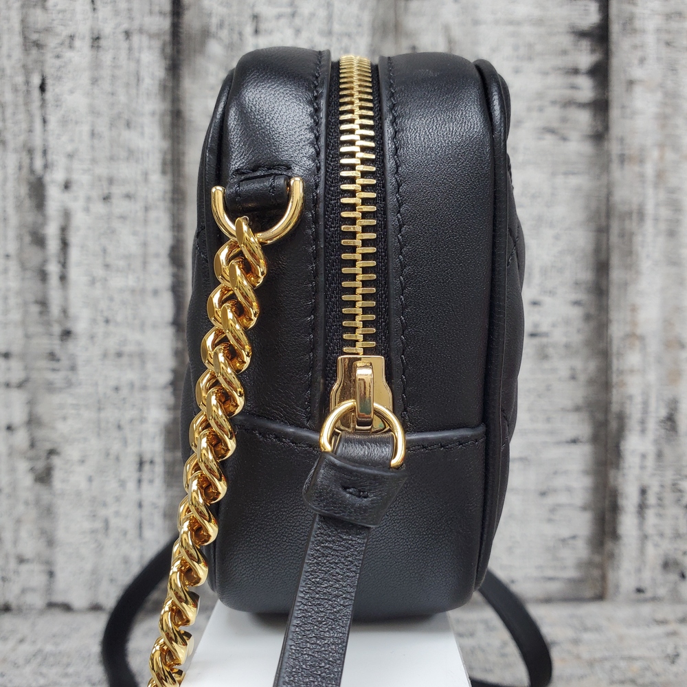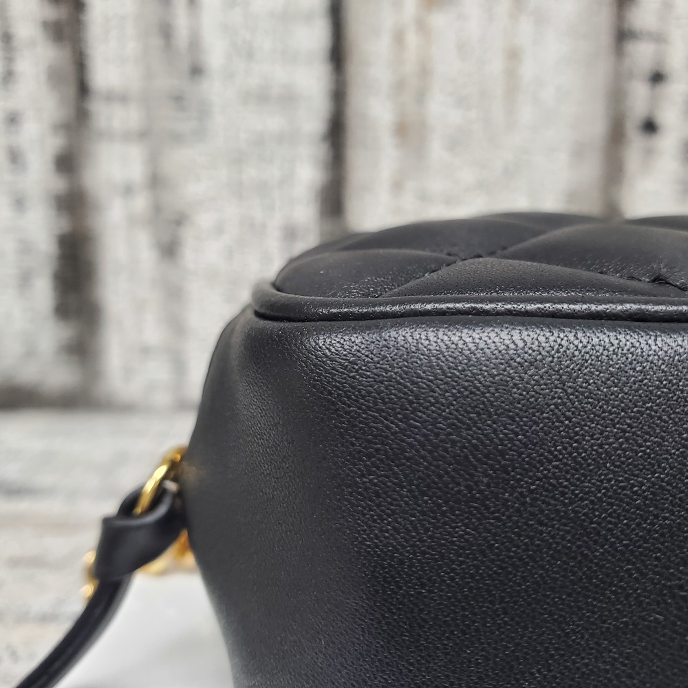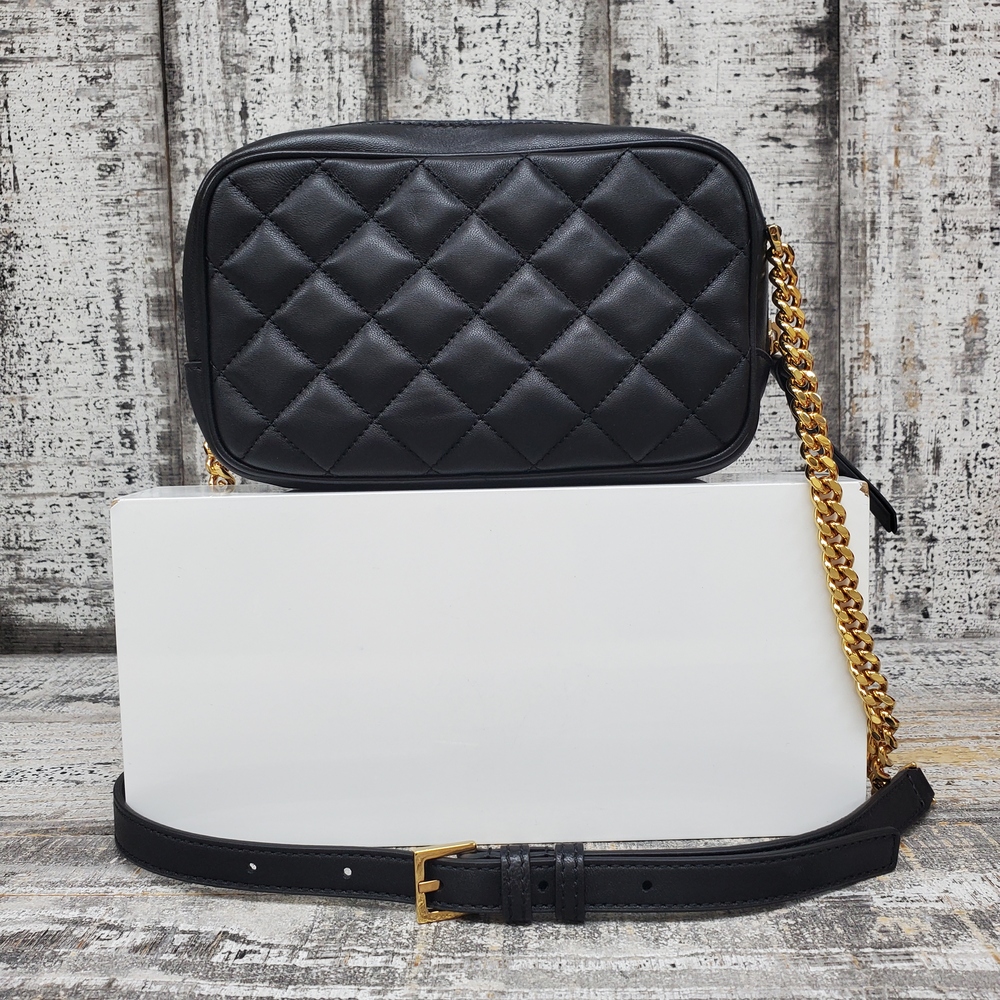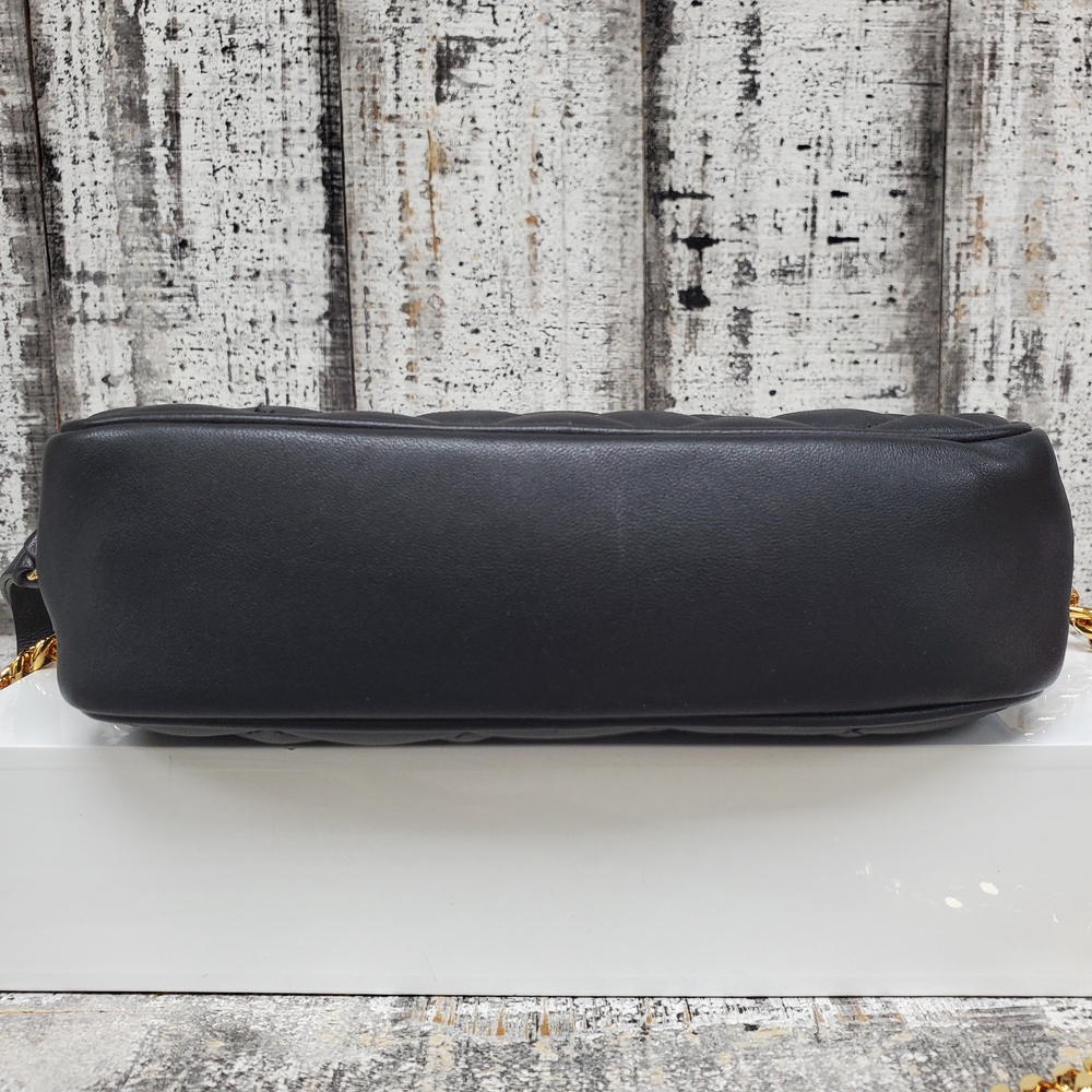 Versace's sleek black crossbody purse, designed with high quality materials, offers great elegance and functionality. Slightly used but remains in good condition.