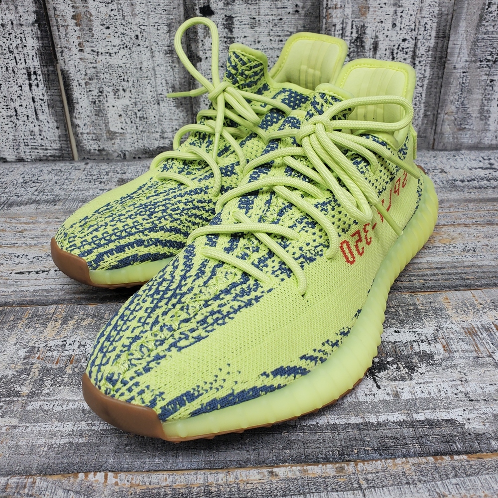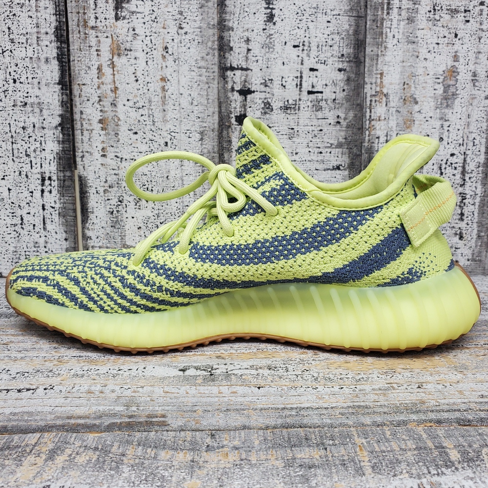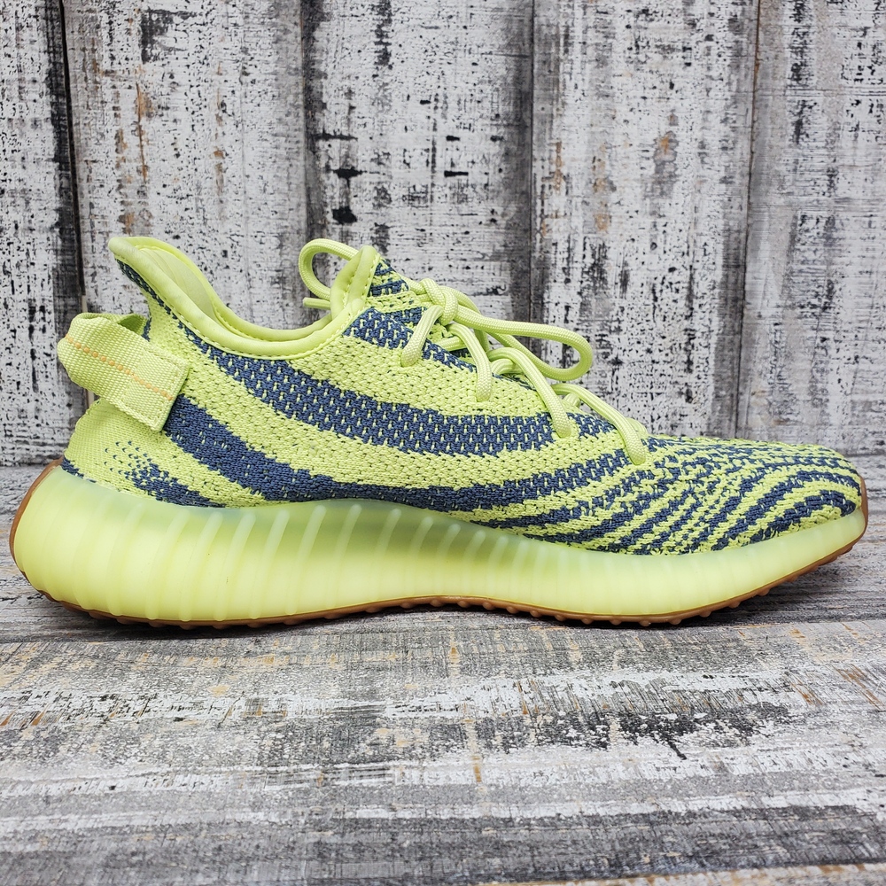 New, boxed Yeezy 350 sneakers of size 8.5. These comfortable, fashionable shoes offer durability and style, perfect for everyday wear and casual outings.